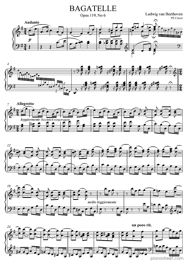 DOWNLOAD: Ludwig van Beethoven - Bagatelle Op. 119 No. 6 in G Major ( from Bagatelles by Beethoven). Piano sheet music to print immediately or to view in mobile devices.