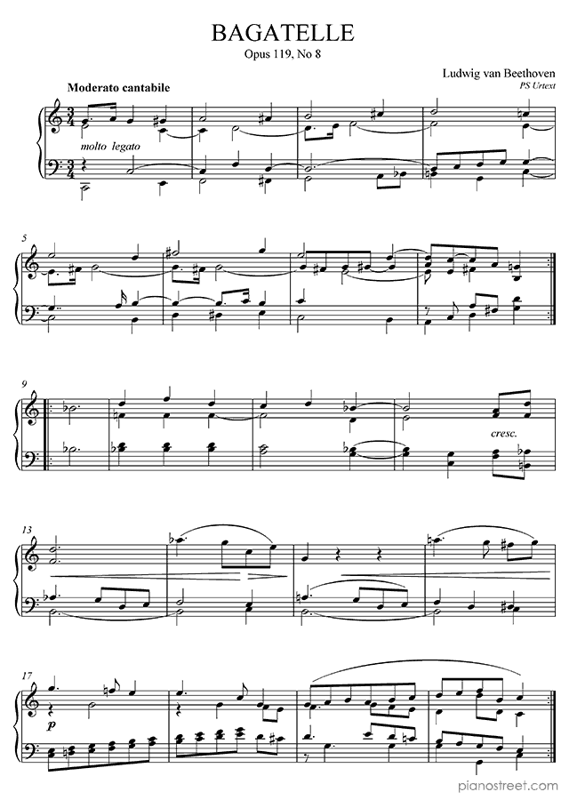 Downloadable piano sheet music from Bagatelles by Ludwig van Beethoven to print: Bagatelle Op. 119 No. 8 in C Major (published in 1822)