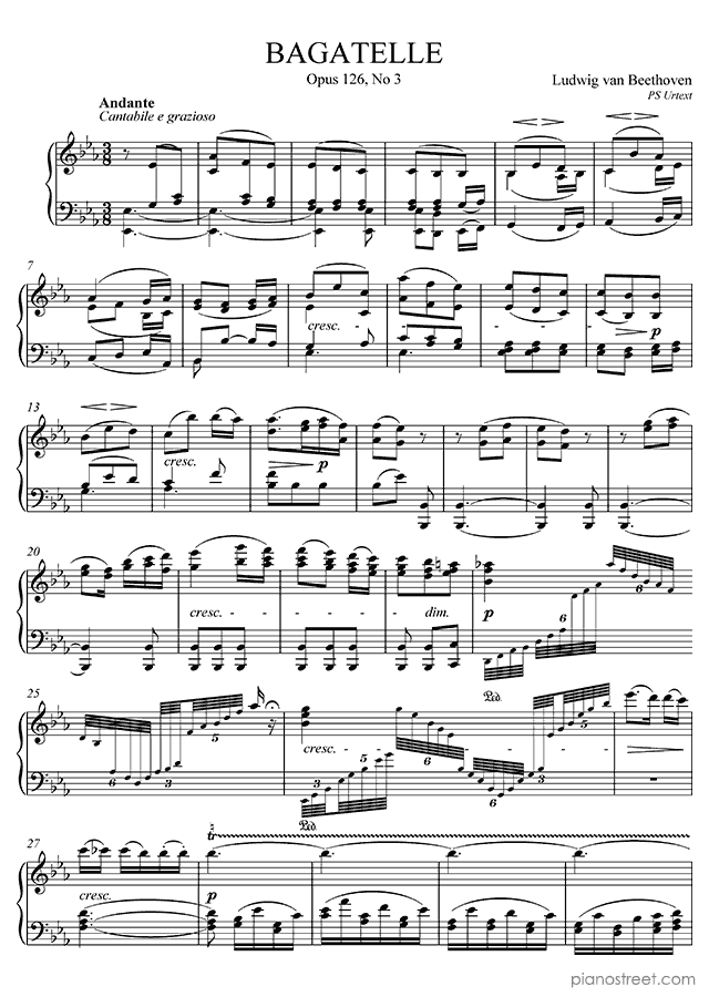 DOWNLOAD Bagatelle in E-flat Major Op. 126 No. 3 by Ludwig van Beethoven (published in 1824) . High quality classical piano scores from the Piano Street sheet music library.