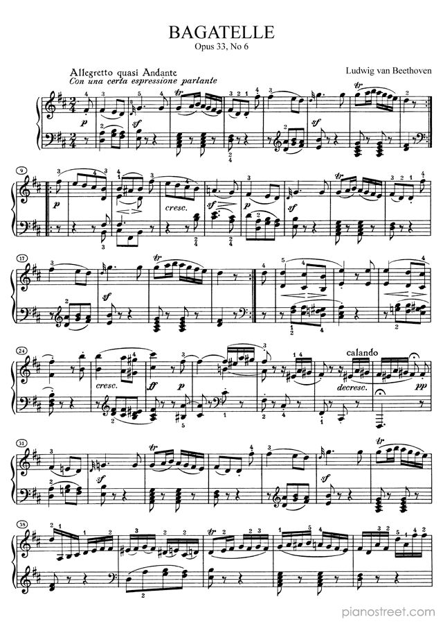 Classical piano sheet music by Beethoven to download: Bagatelle Op. 33 No. 6 in the key of This piece has difficulty level 5 in the category Piece