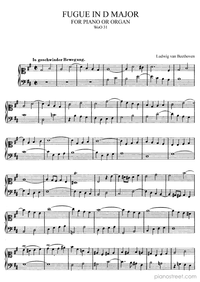 Downloadable piano sheet music by Ludwig van Beethoven to print: Fugue WoO 31 in D Major (published in 1783)