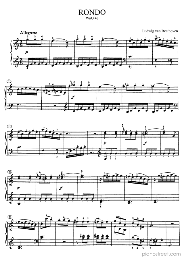 Ludwig van Beethoven: Rondo WoO 48 in C Major - piano sheet music to print instantly. This piece is level 5 and was composed during the Classical period.
