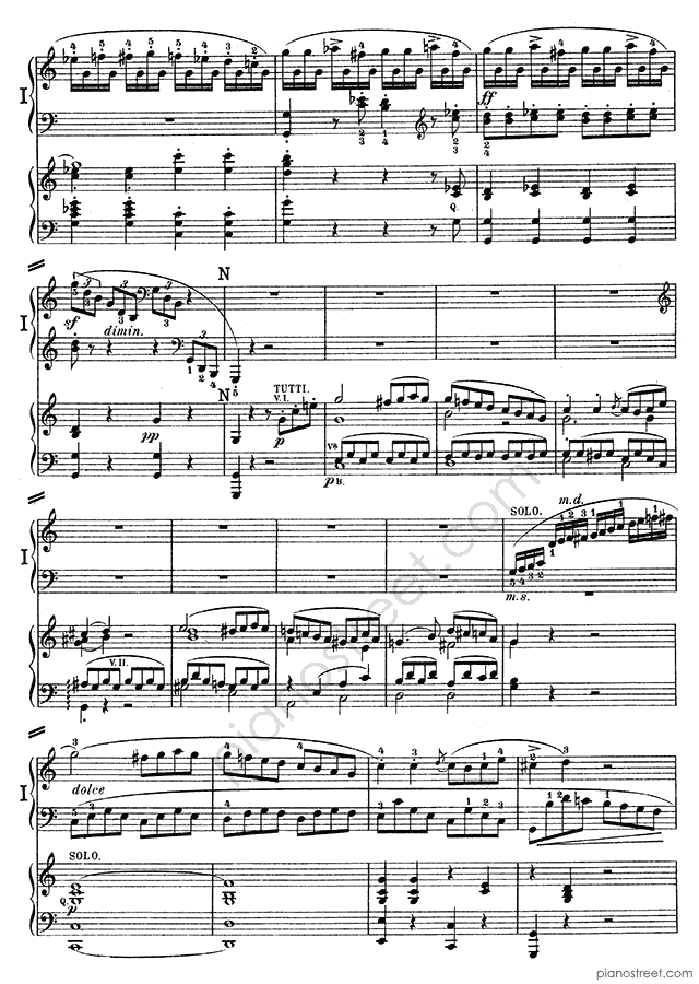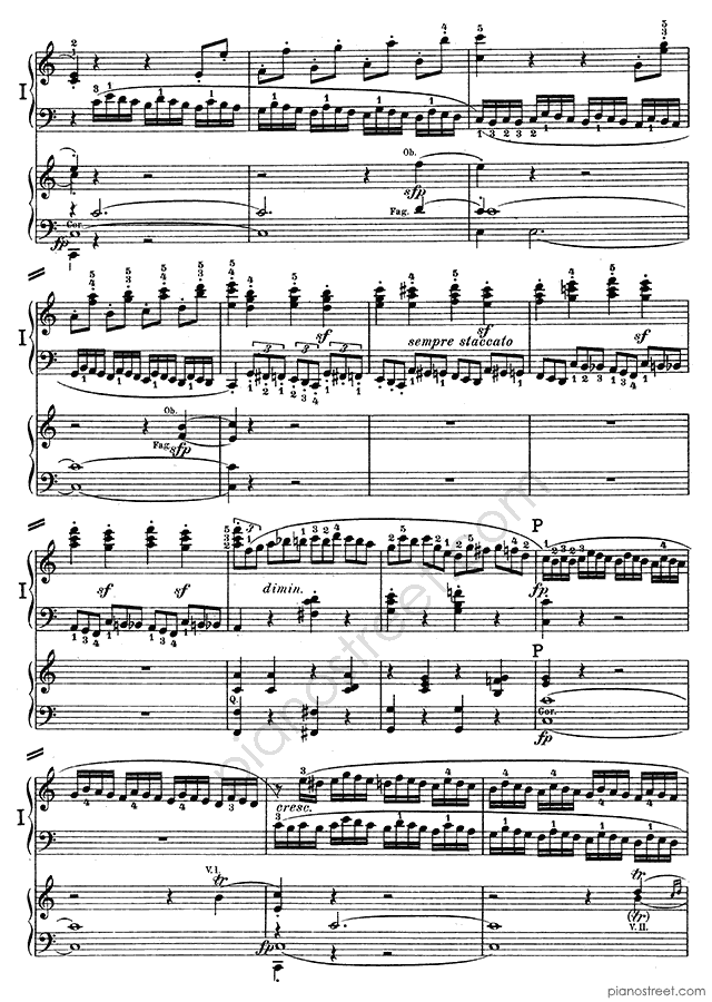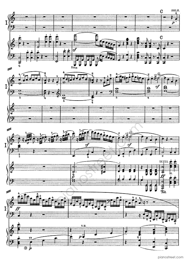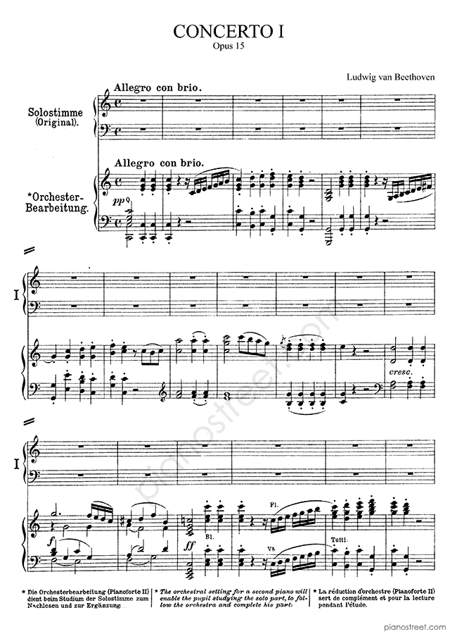Piano Concerto 1 Op. 15 in C Major, by the classical composer Ludwig van Beethoven. This piano piece was initially published in the year 1797 and is included in Concertos by Beethoven.