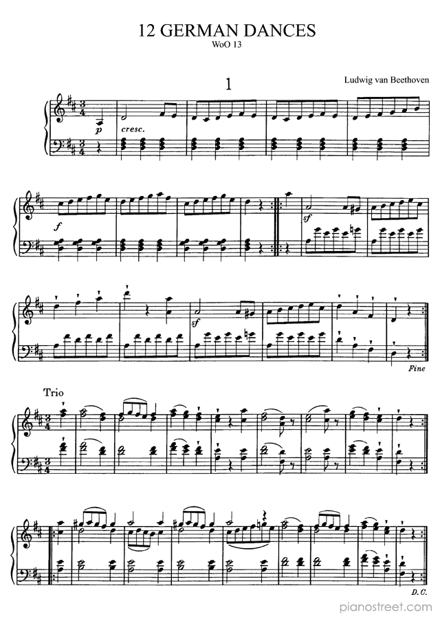 Ludwig van Beethoven: 12 German Dances WoO 13 from Dances - piano sheet music to print instantly. This piece is level 3 and was composed during the Classical period.