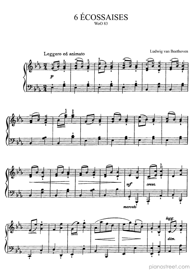DOWNLOAD: Ludwig van Beethoven - 6 Écossaises WoO 83 in E-flat Major ( from Dances by Beethoven). Piano sheet music to print immediately or to view in mobile devices.
