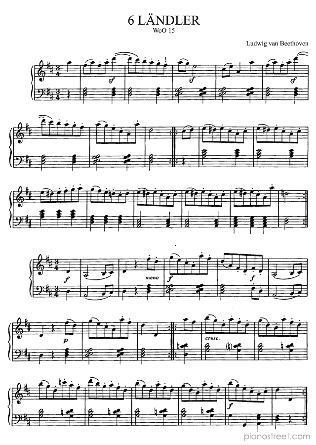 Beethoven: 6 Ländler WoO 15 (published in 1802) . DOWNLOAD piano sheet music from Piano Street digital sheet music library.