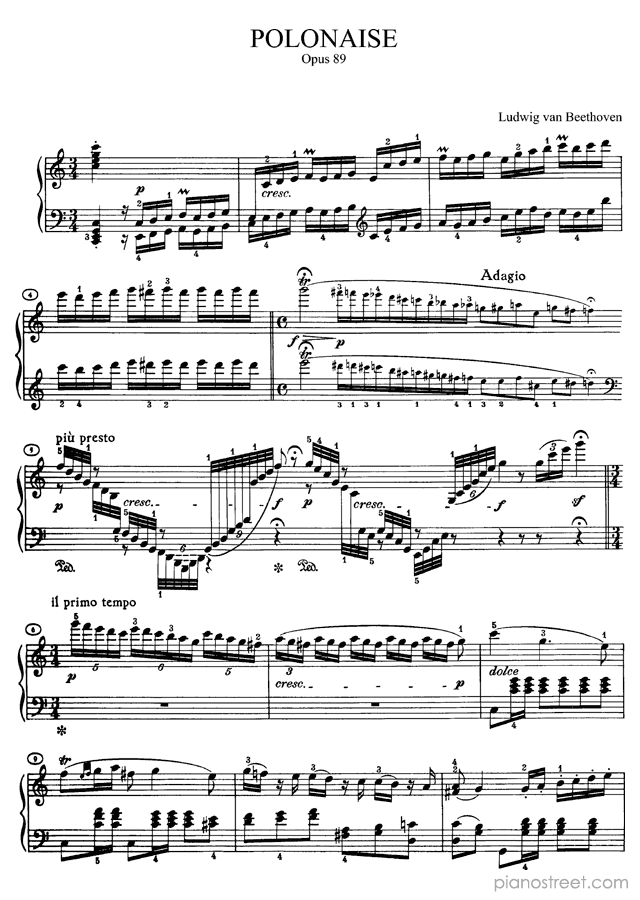 Classical piano sheet music by Beethoven to download: Polonaise Op. 89 in the key of This piece has difficulty level 8 in the category Piece