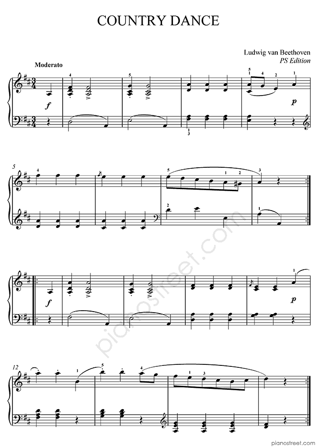 DOWNLOAD: Ludwig van Beethoven - Country Dance in D Major ( by Beethoven). Piano sheet music to print immediately or to view in mobile devices.
