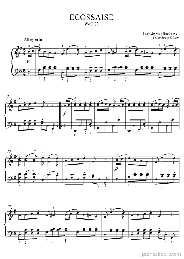 Downloadable piano sheet music by Ludwig van Beethoven to print: Ecossaise WoO 23 in G Major (published in 1810)