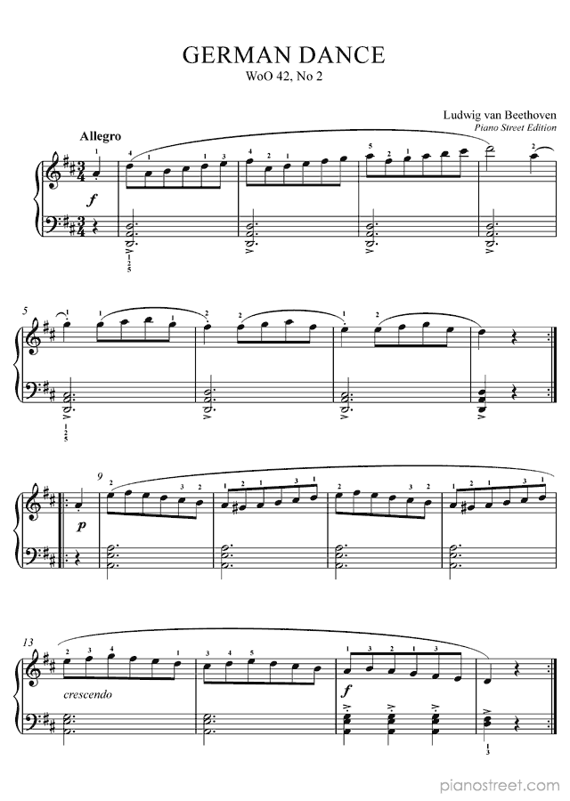 DOWNLOAD: Ludwig van Beethoven - German Dance No. 2 WoO 42 in D Major ( by Beethoven). Piano sheet music to print immediately or to view in mobile devices.
