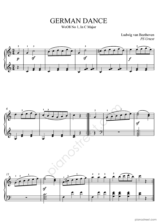 Downloadable piano sheet music by Ludwig van Beethoven to print: German Dance No. 1 WoO 8 in C Major