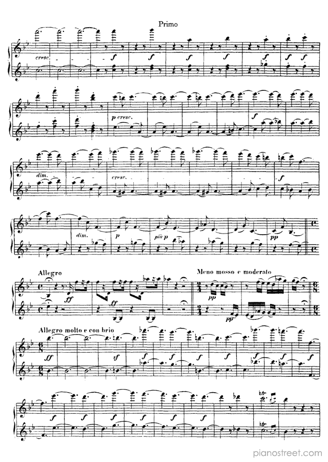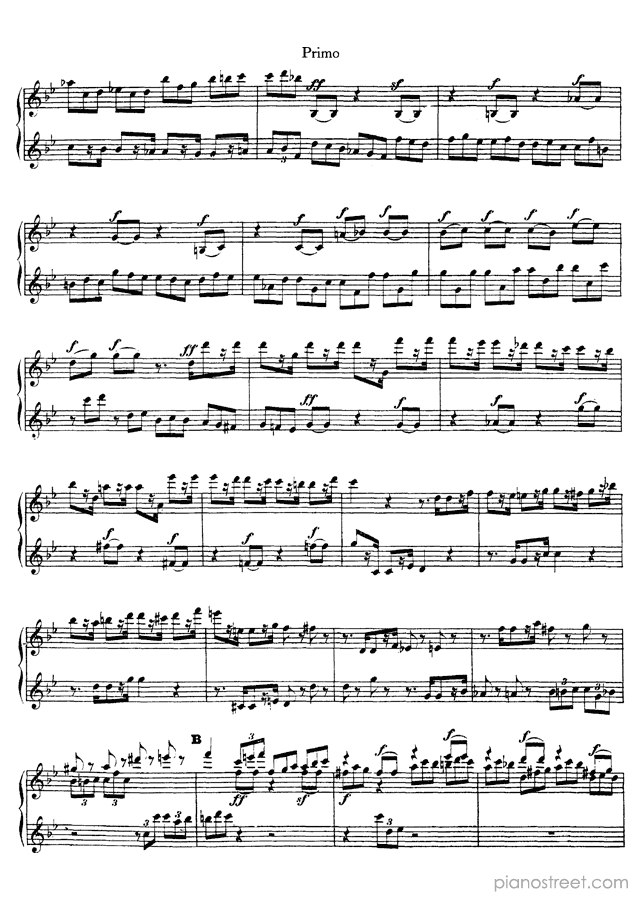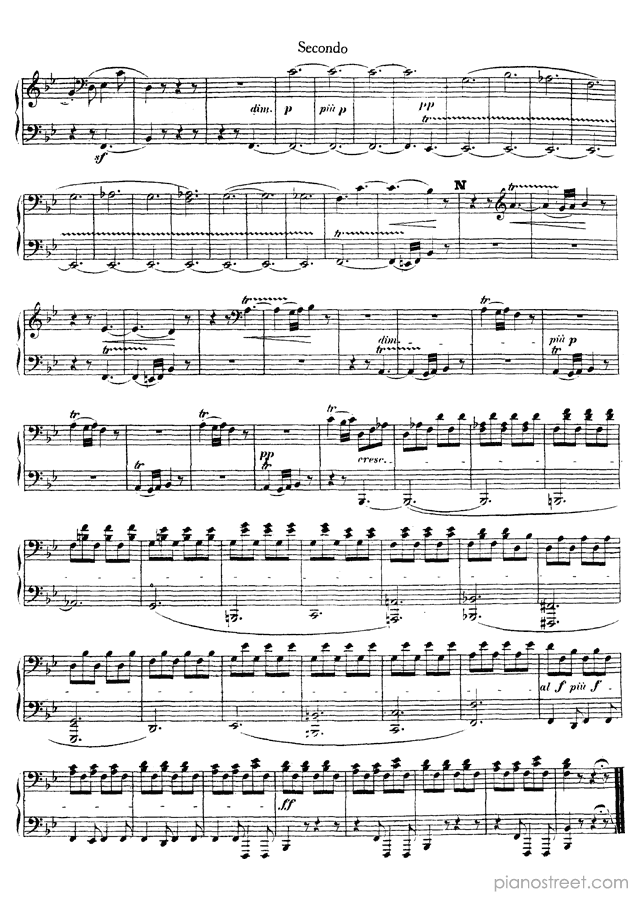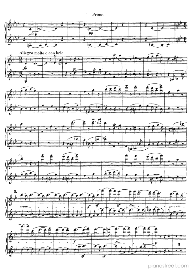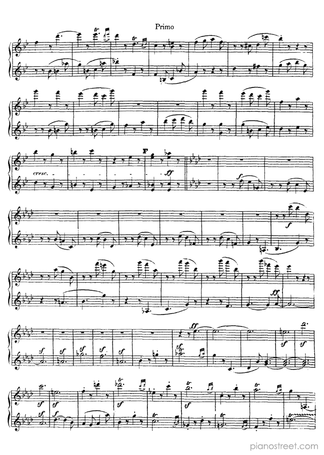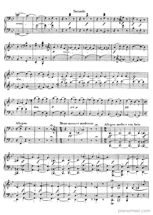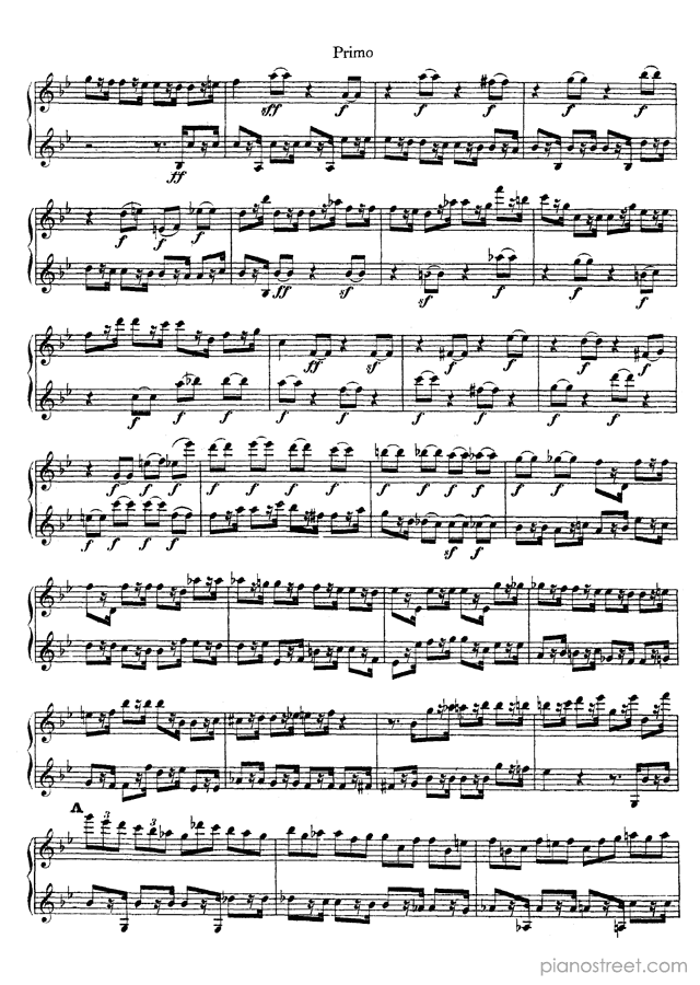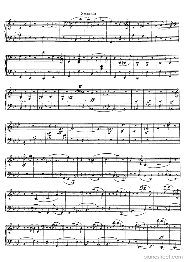 Piano sheet music and recordings. This piece is by Ludwig van Beethoven: Grosse Fuge - for Four Hands Op. 134 in B-flat Major (published in 1826) . Level 8+, Period: Classical