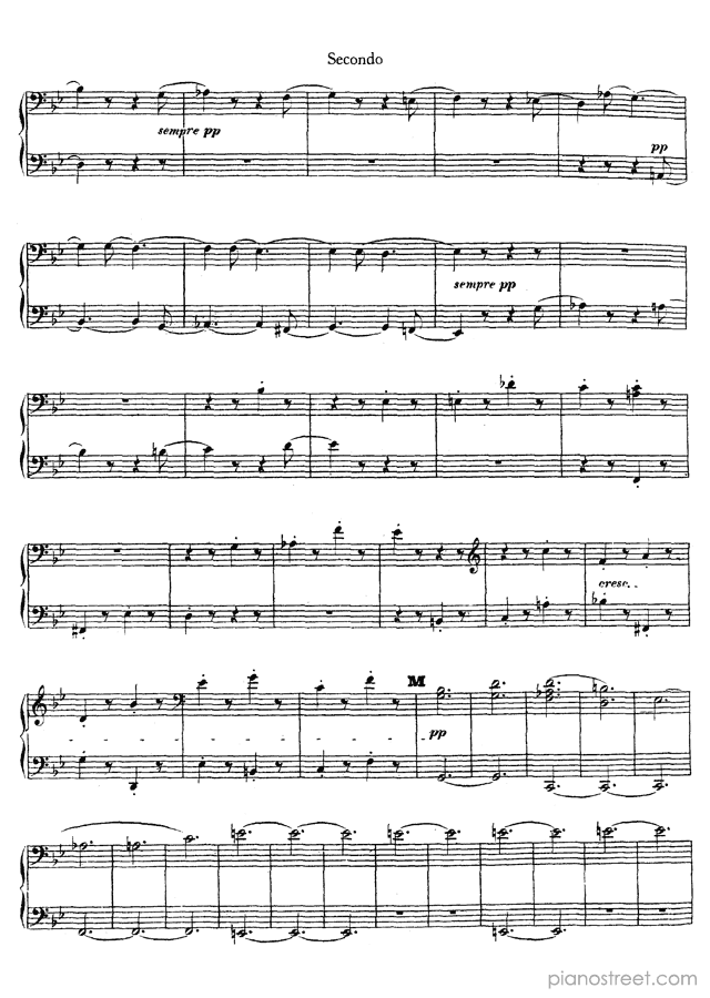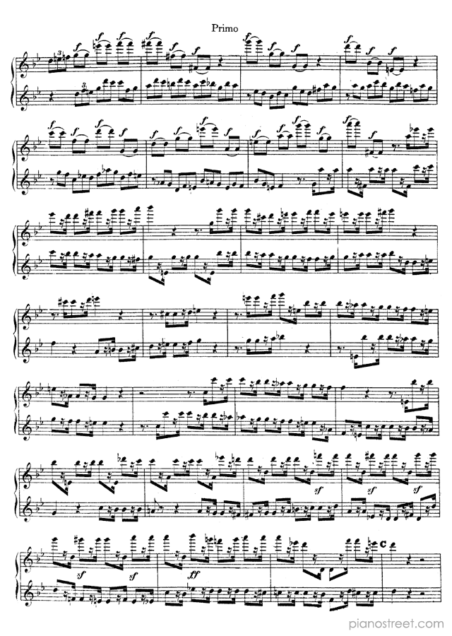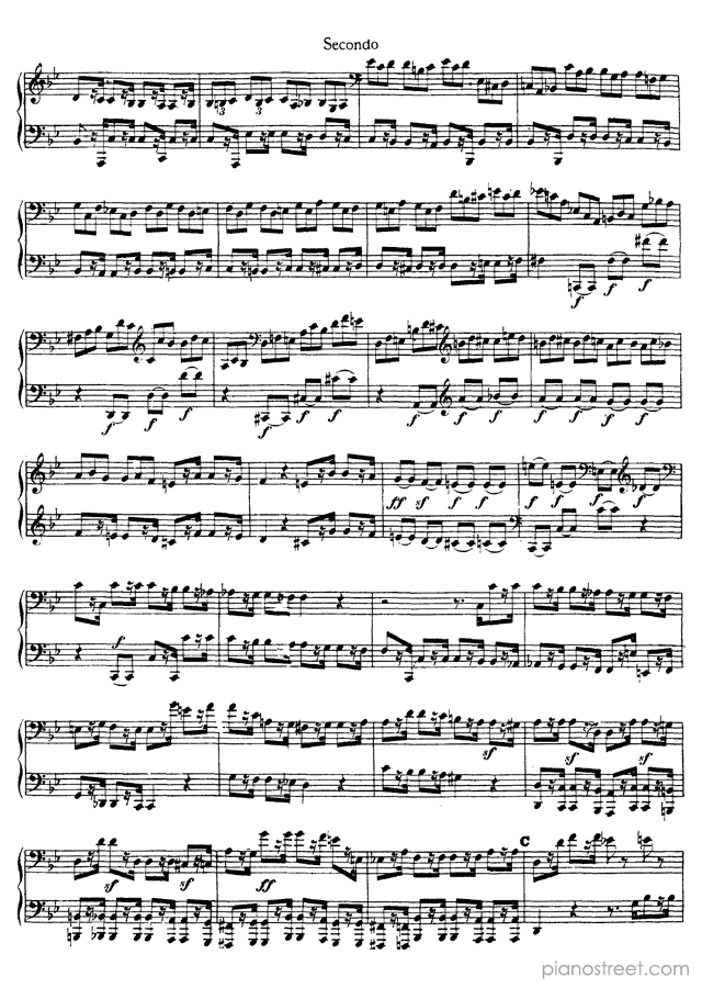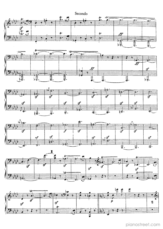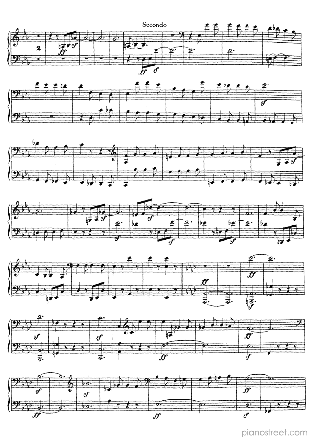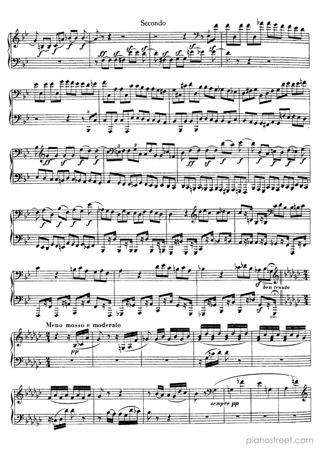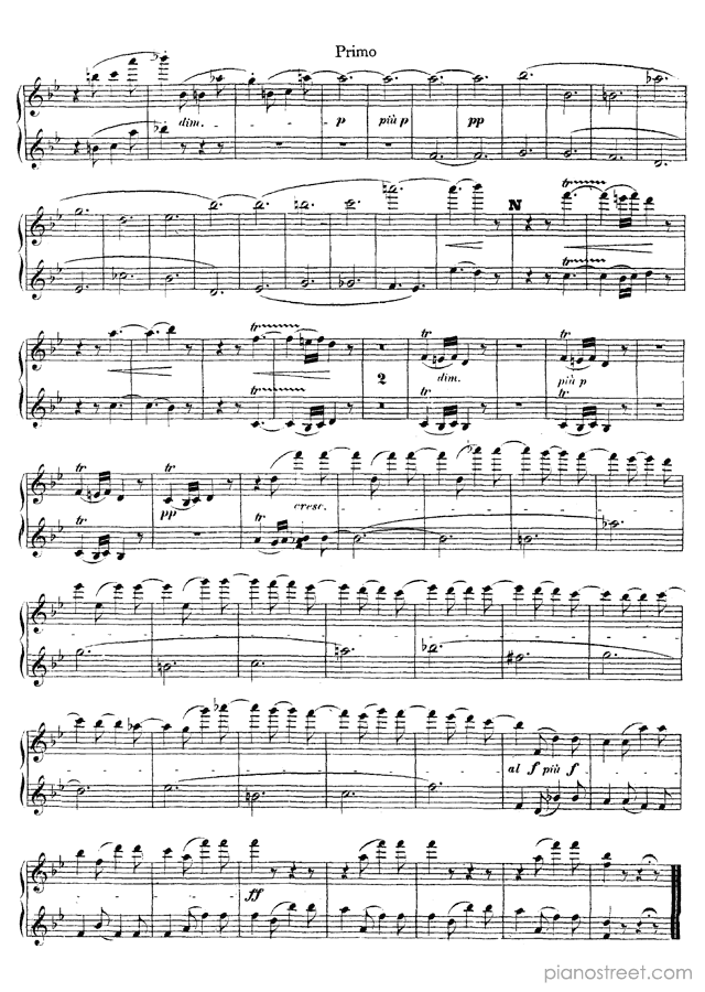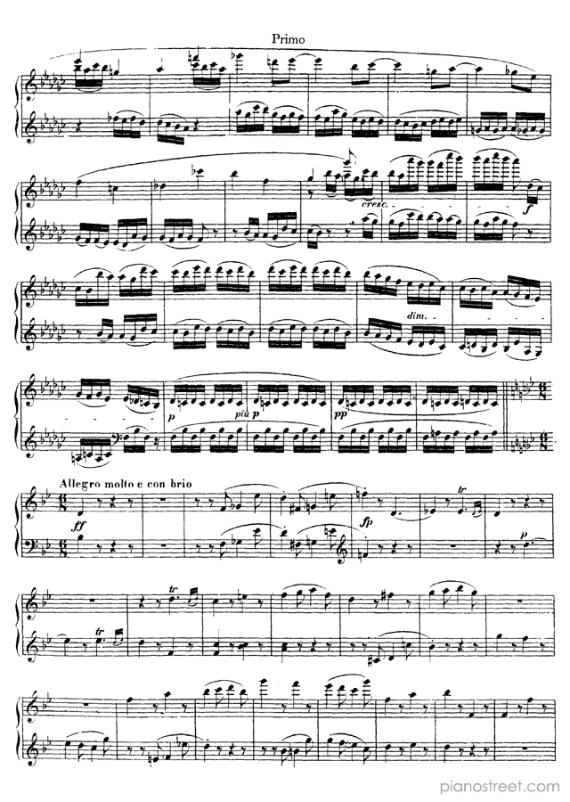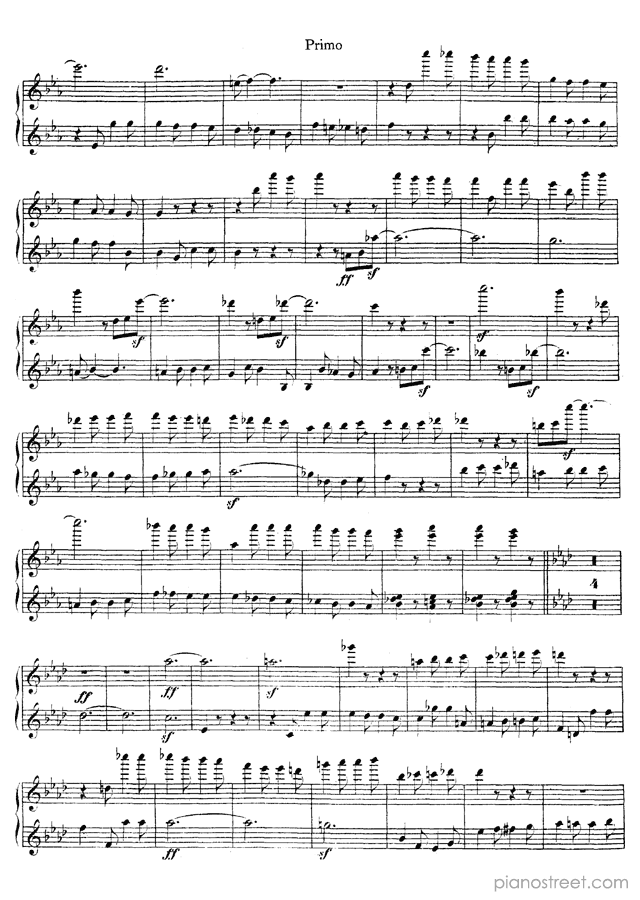 Piano sheet music and recordings. This piece is by Ludwig van Beethoven: Grosse Fuge - for Four Hands Op. 134 in B-flat Major (published in 1826) . Level 8+, Period: Classical