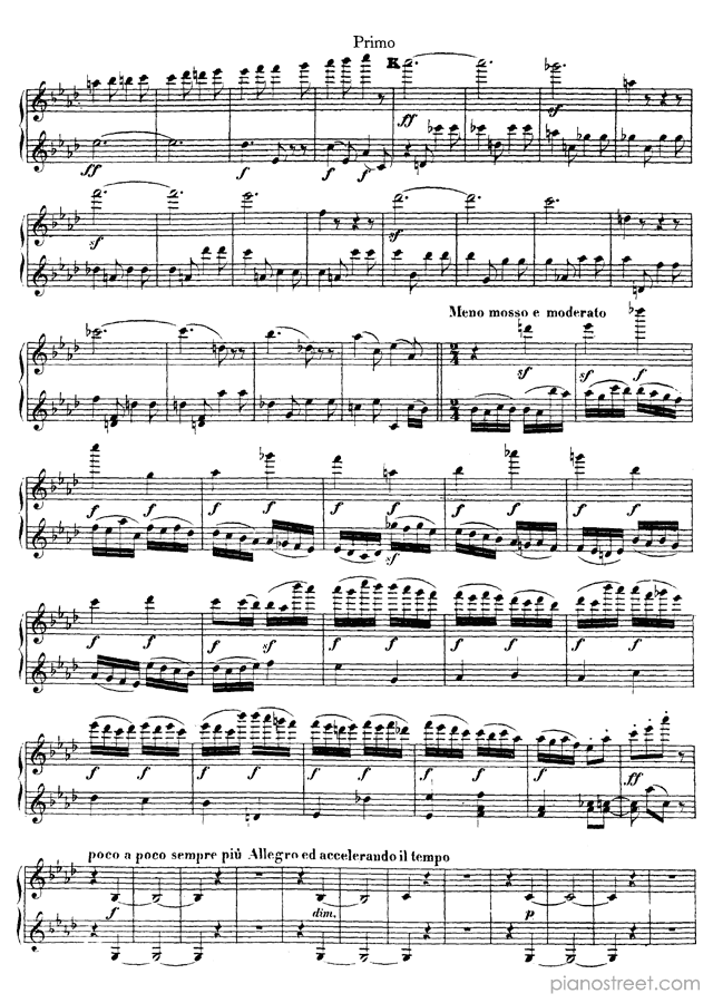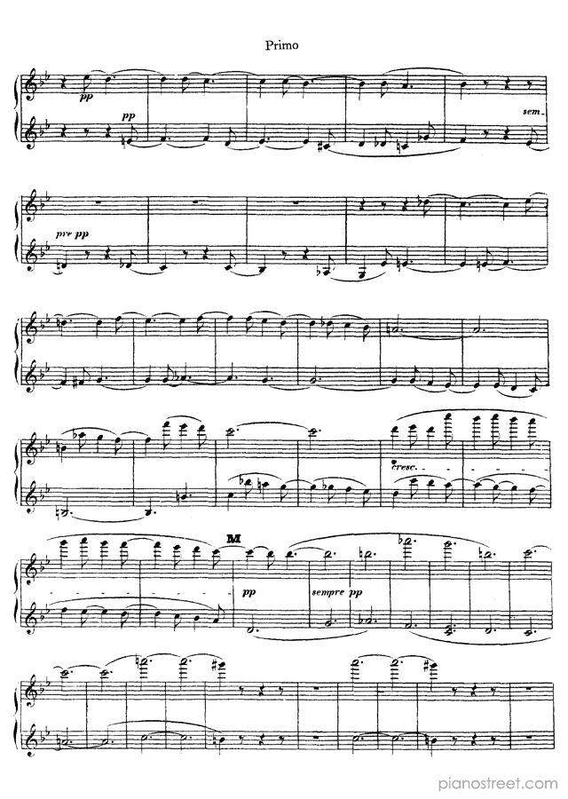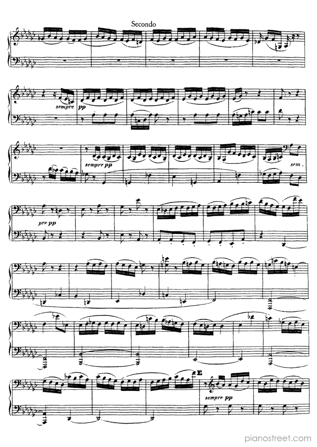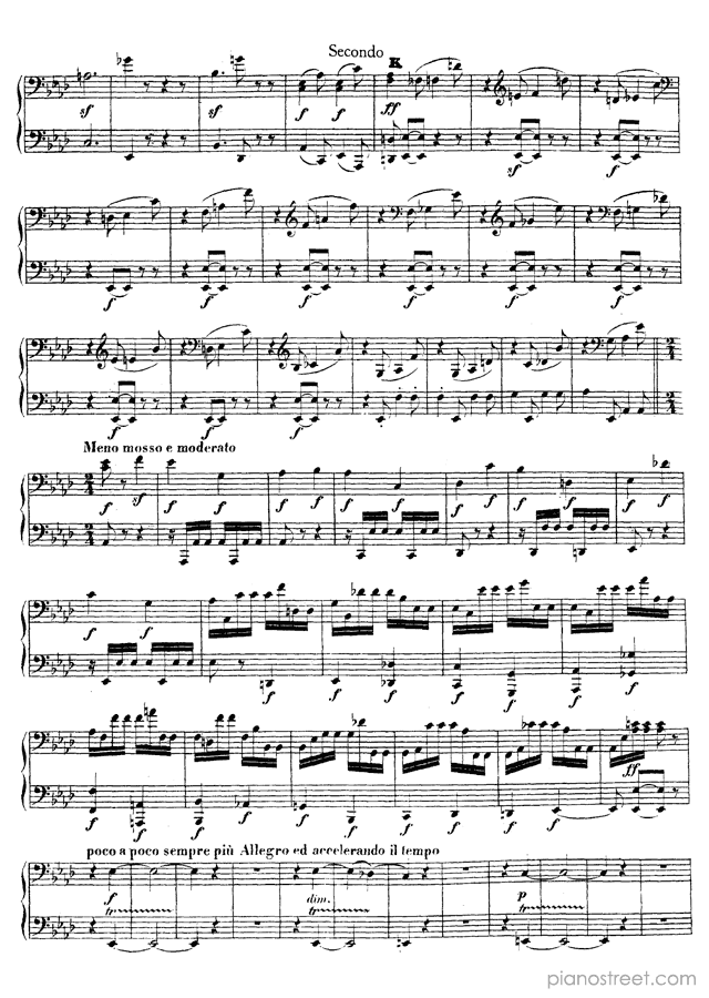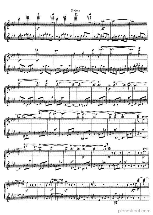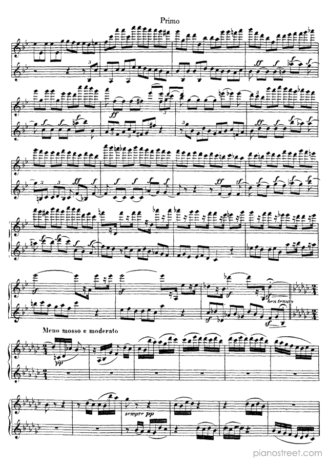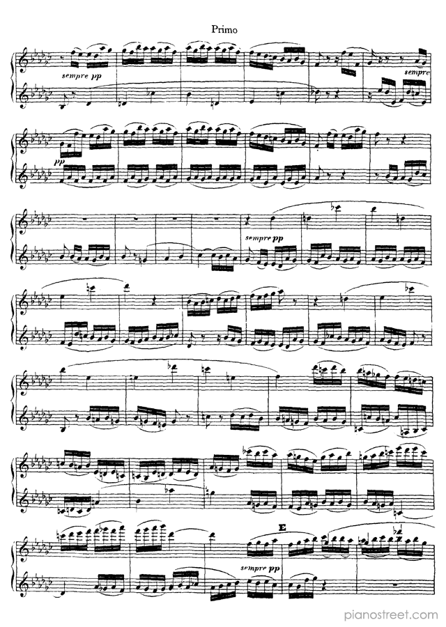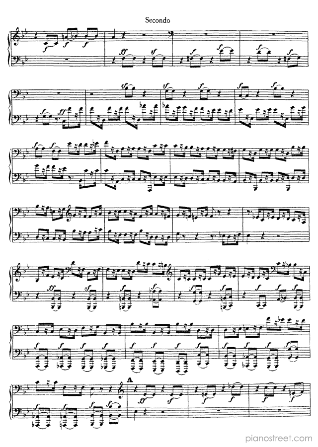 Piano sheet music and recordings. This piece is by Ludwig van Beethoven: Grosse Fuge - for Four Hands Op. 134 in B-flat Major (published in 1826) . Level 8+, Period: Classical