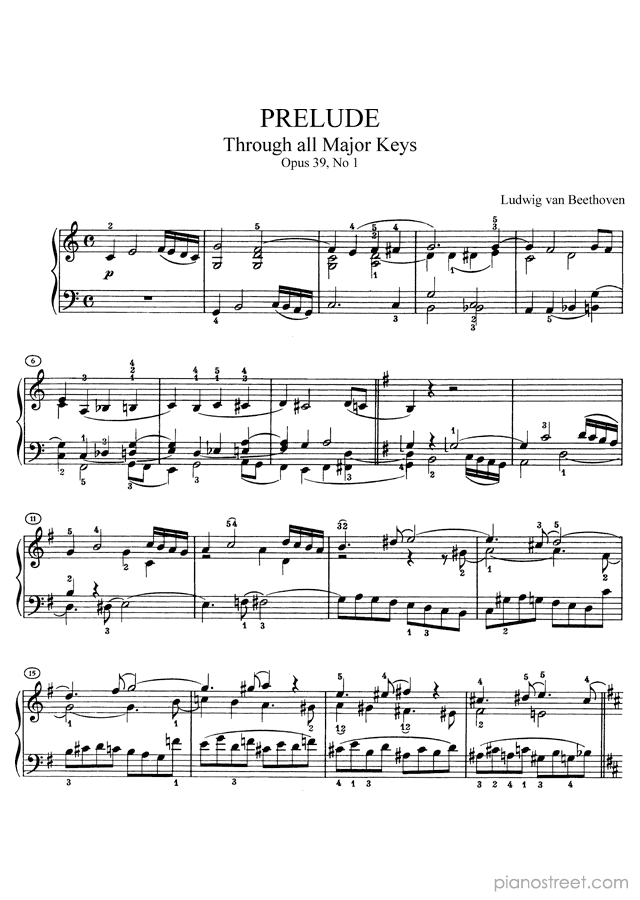 Beethoven: Prelude Op. 39 No. 1 in C Major (published in 1804) . DOWNLOAD piano sheet music from Piano Street digital sheet music library.