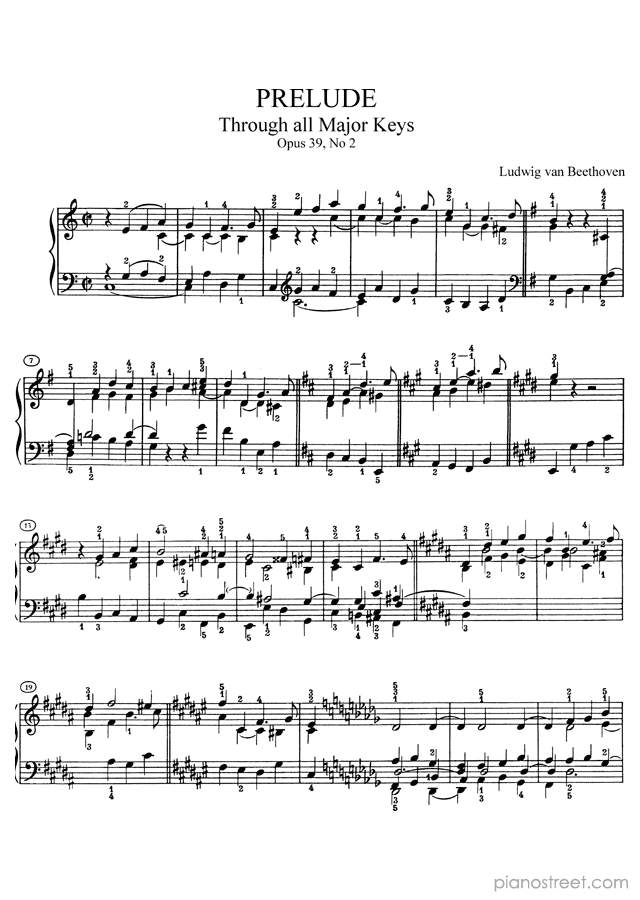 Prelude in C Major Op. 39 No. 2 by Ludwig van Beethoven. Sheet music and recordings of thousands of piano pieces by Ludwig van Beethoven and many other famous composers to view in your digital device, print out or listen to.