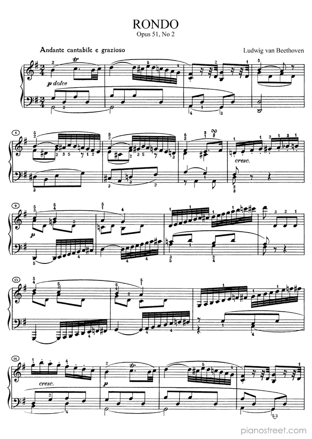 DOWNLOAD: Ludwig van Beethoven - Rondo Op. 51 No. 2 in G Major ( by Beethoven). Piano sheet music to print immediately or to view in mobile devices.