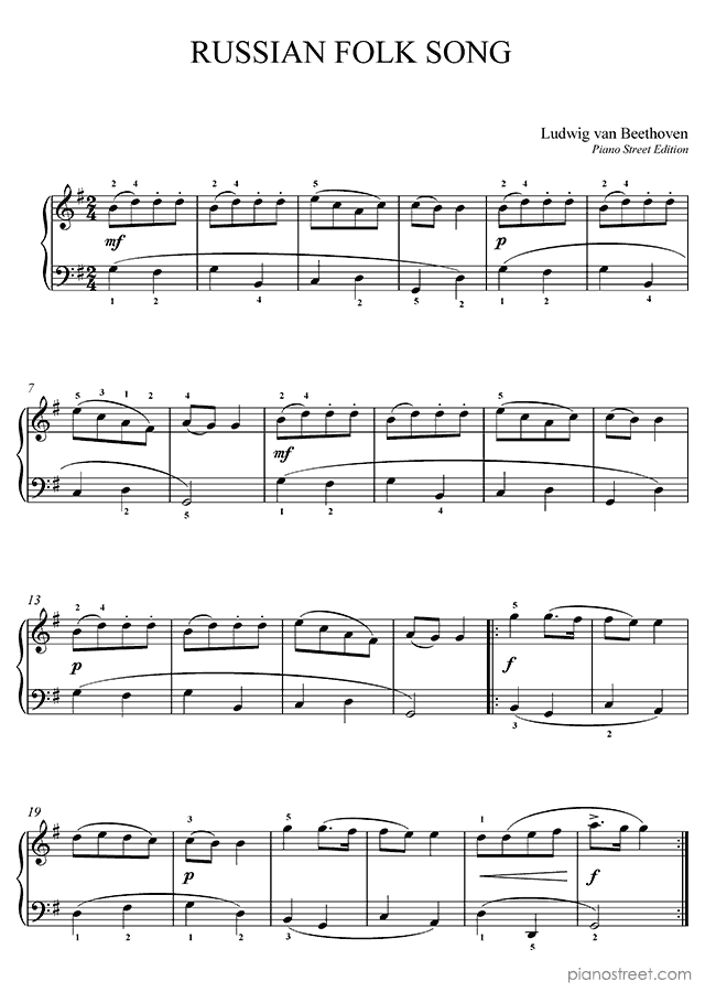 Russian Folk Song in G Major by Ludwig van Beethoven - piano sheet music to download and print instantly.