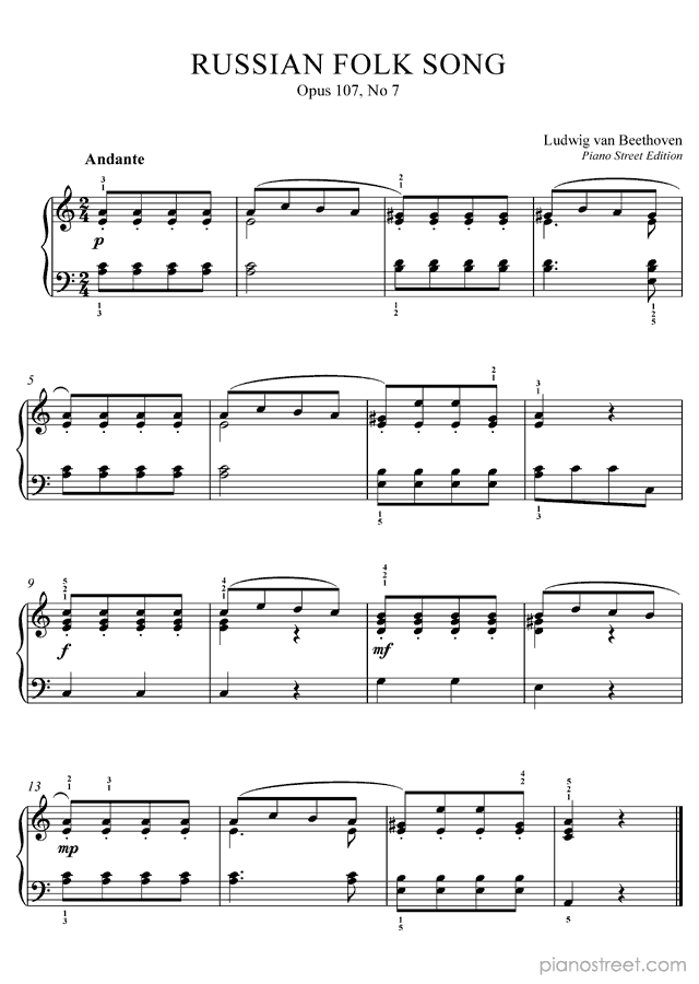 Russian Folk Song in A Minor - Op. 107 No. 7 is a piano piece by the classical composer Ludwig van Beethoven who lived between the years 1770 and 1827.