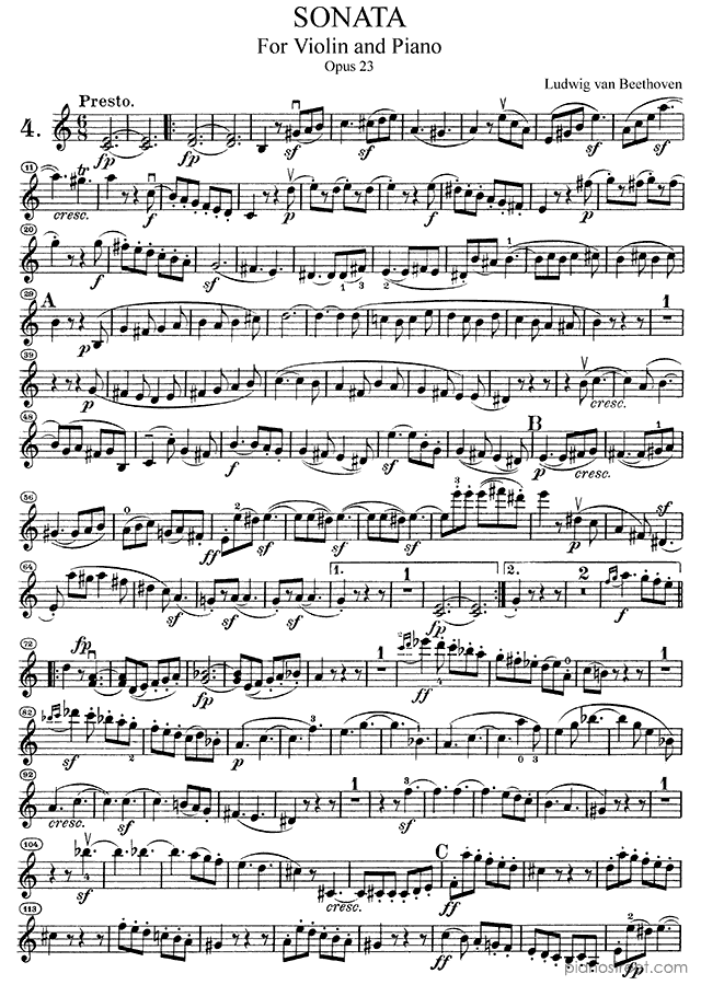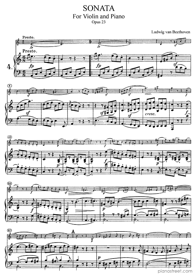 Beethoven: Sonata for Violin and Piano Op. 23 in A Minor . DOWNLOAD piano sheet music from Piano Street digital sheet music library.