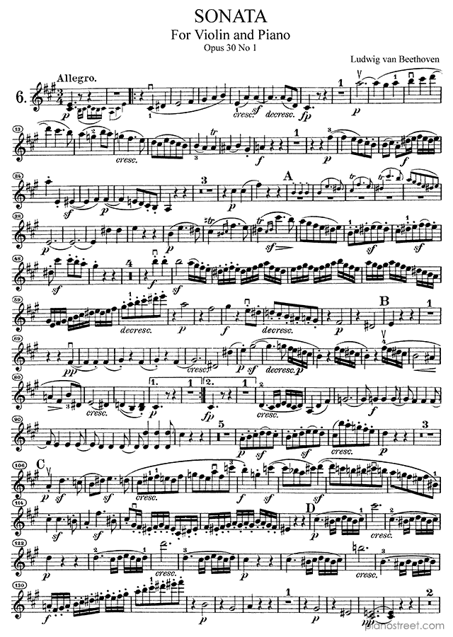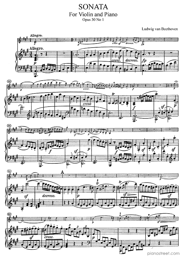 Sonata for Violin and Piano in A Major - Op. 30 No. 1 is a piano piece by the classical composer Ludwig van Beethoven who lived between the years 1770 and 1827.