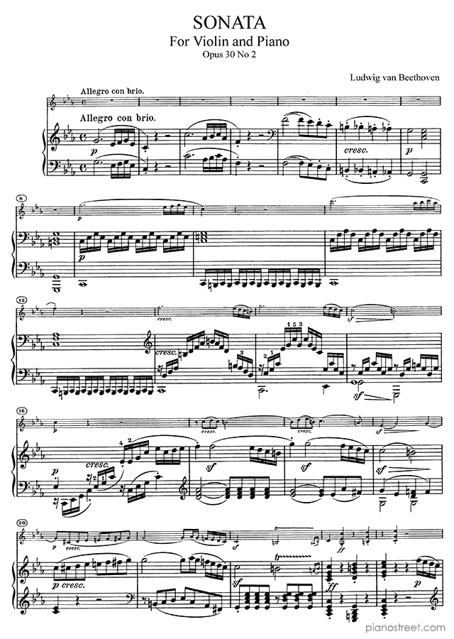 DOWNLOAD: Ludwig van Beethoven - Sonata for Violin and Piano Op. 30 No. 2 in C Minor ( from Sonatas for Violin and Piano by Beethoven). Piano sheet music to print immediately or to view in mobile devices.
