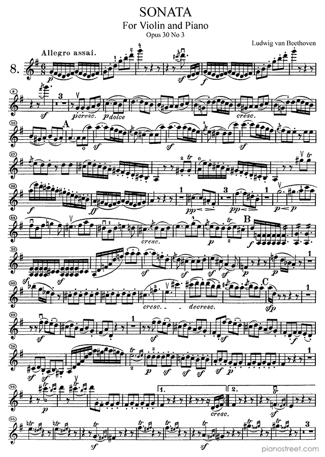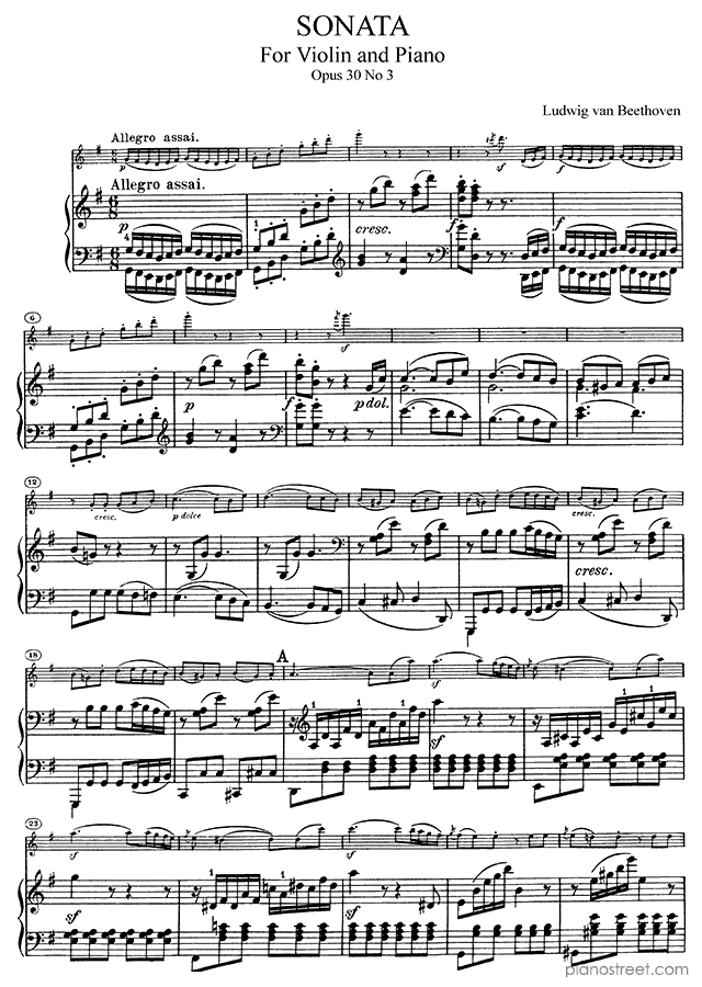 DOWNLOAD Sonata for Violin and Piano in G Major Op. 30 No. 3 by Ludwig van Beethoven. High quality classical piano scores from the Piano Street sheet music library.