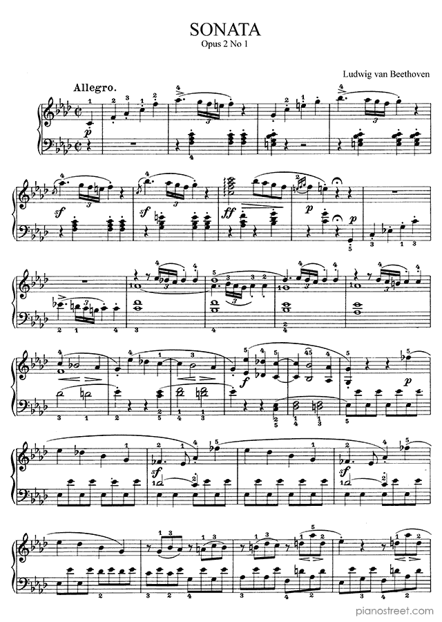 Sonata 1 in F Minor - Op. 2 No. 1 is a piano piece by the classical composer Ludwig van Beethoven who lived between the years 1770 and 1827.