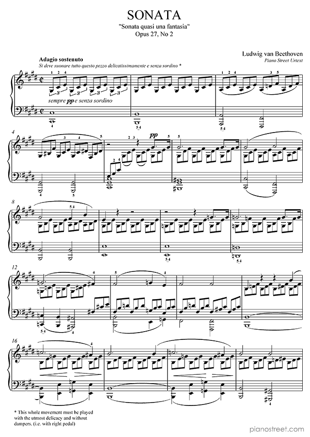 Sonata 14 (Moonlight) Op. 27 No. 2 in C-sharp Minor, a composition by the classical composer Ludwig van Beethoven. The piano score of this piece was first published in 1801 and is part of Sonatas by Beethoven.