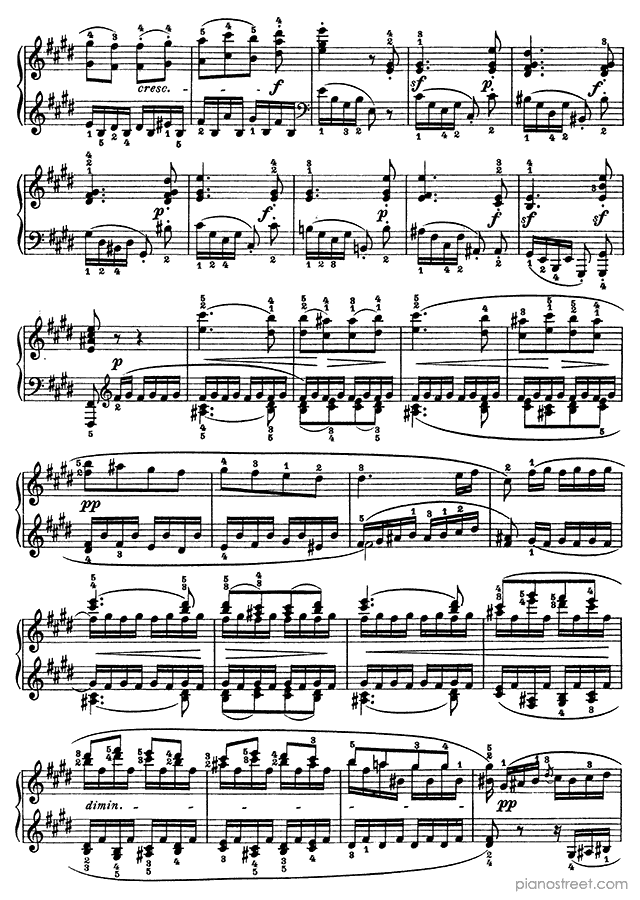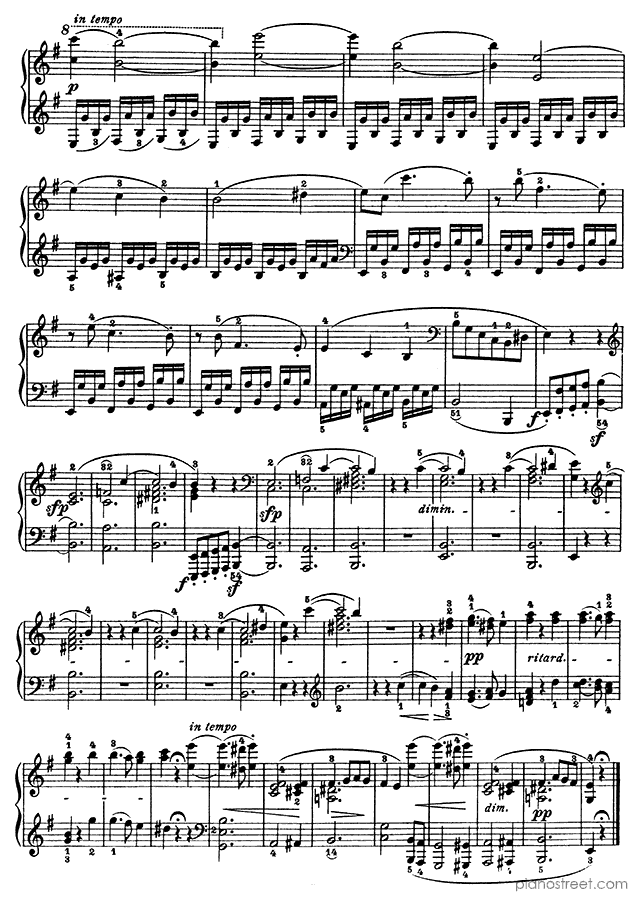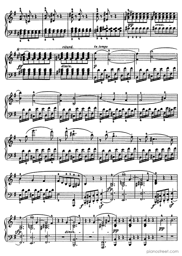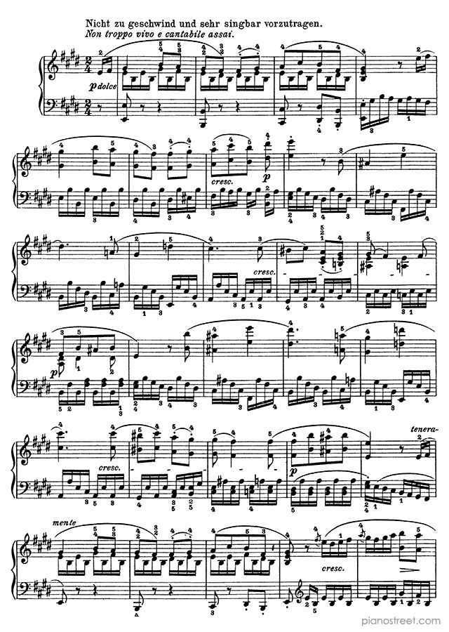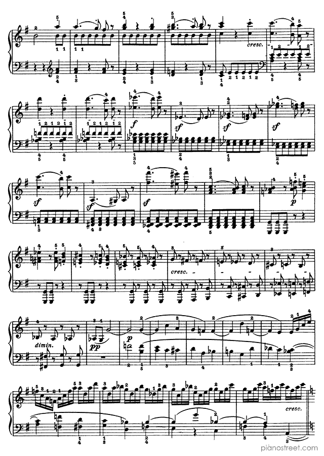 This piece is composed by Ludwig van Beethoven and was published in 1814. Title: Sonata 27, Op. 90 in E Minor from Sonatas. The difficulty level if graded by ABRSM would be approximately 8 and it belongs to the Classical period.
