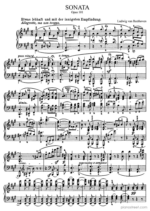 Sonata 28 in A Major Op. 101 by the composer Ludwig van Beethoven (1770-1827). This piano piece was composed in 1816 and is part of Beethoven's Sonatas.