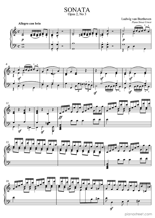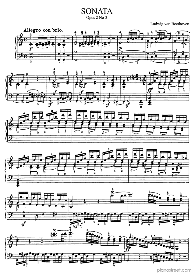 Ludwig van Beethoven, one of the prominent composers active in the Classical era, has written this piece titled Sonata 3 Op. 2 No. 3 in C Major from Sonatas. The composition is categorized as "Sonata" in Piano Street's sheet music library and the level of difficulty is 8+.