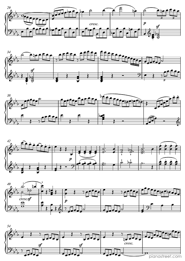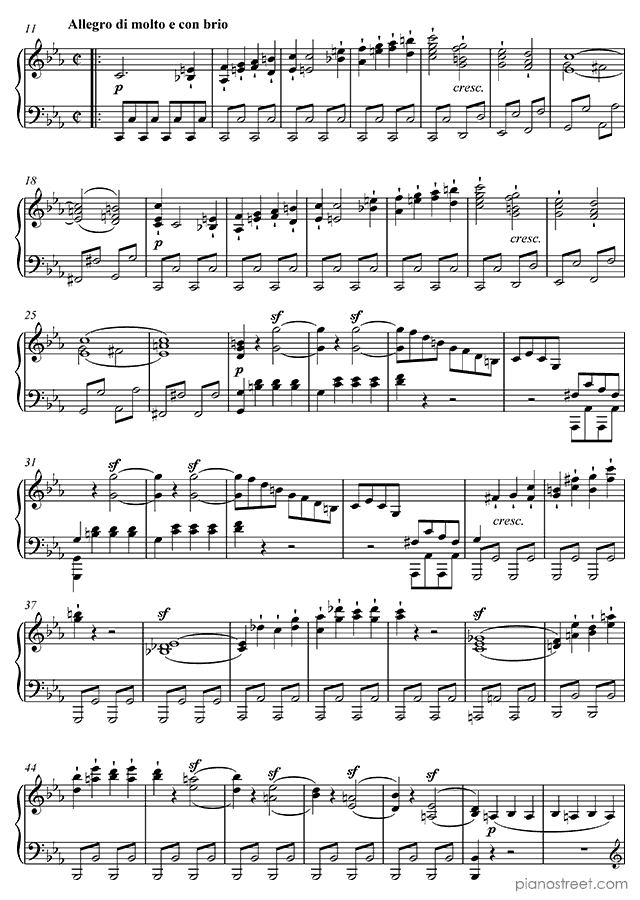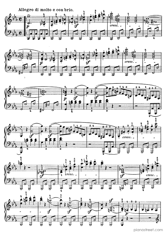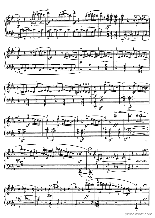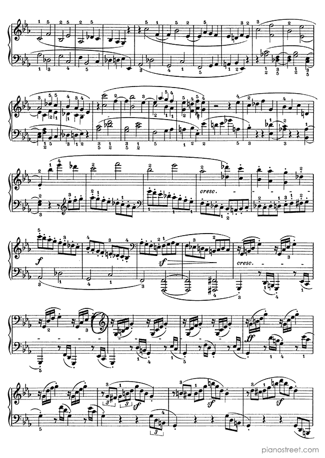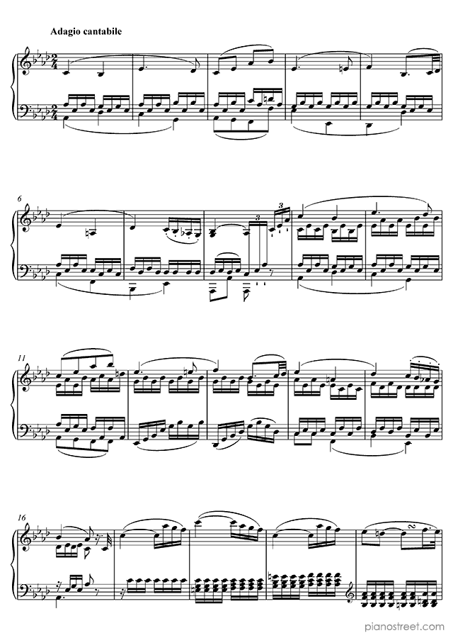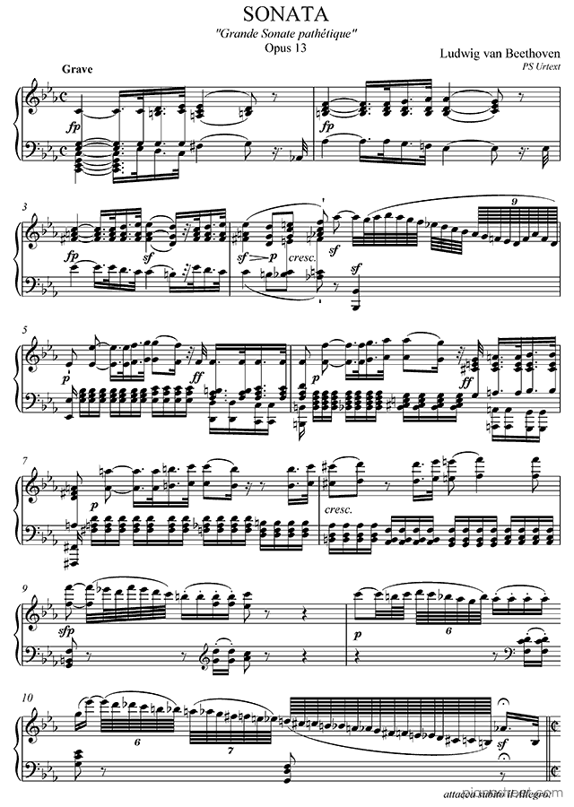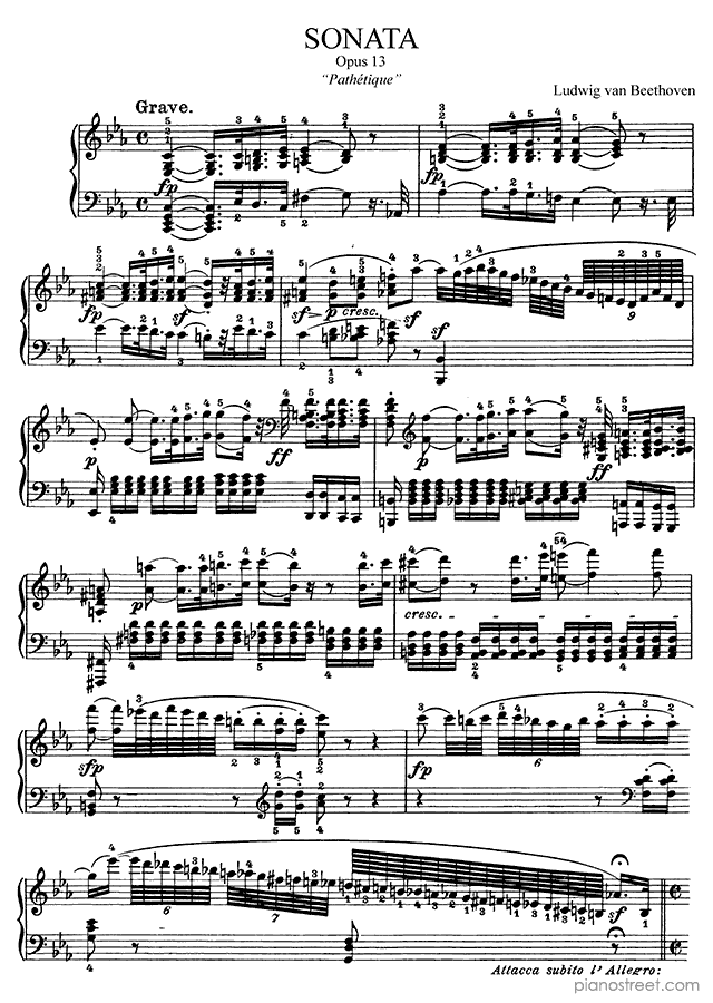 Beethoven’s eighth piano sonata, in c minor, is one of the few works that the composer himself named, officially calling it Grande sonate pathétique. It is interesting to note that there are several similarities between the Pathétique Sonata and Mozart’s C minor sonata K. 457, as well as Bach's C minor Partita. For instance, the main theme of the slow movement of the Pathétique sounds remarkably similar to a theme in the slow movement of the Mozart sonata.Forum posts about this piece: