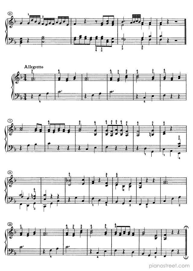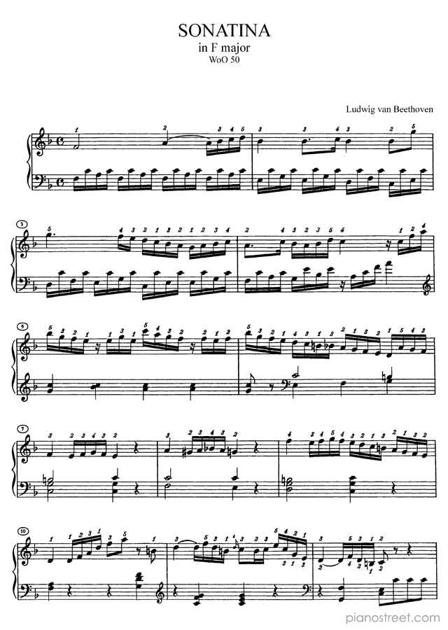 Sonatina in F Major WoO 50 by Ludwig van Beethoven. Sheet music and recordings of thousands of piano pieces by Ludwig van Beethoven and many other famous composers to view in your digital device, print out or listen to.