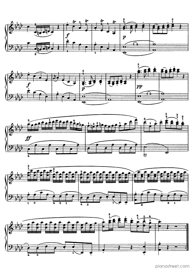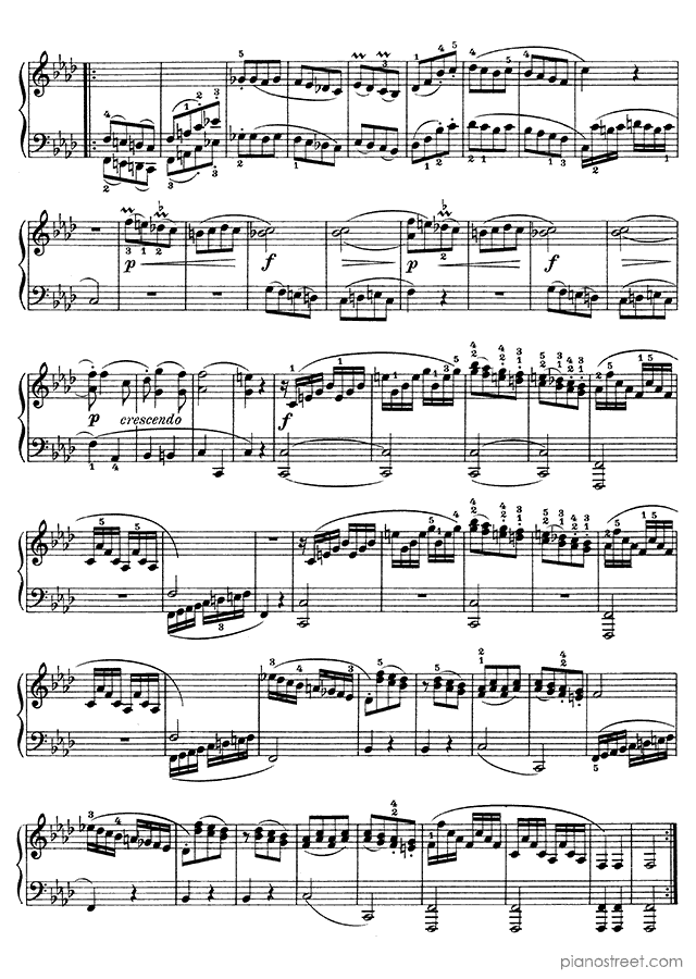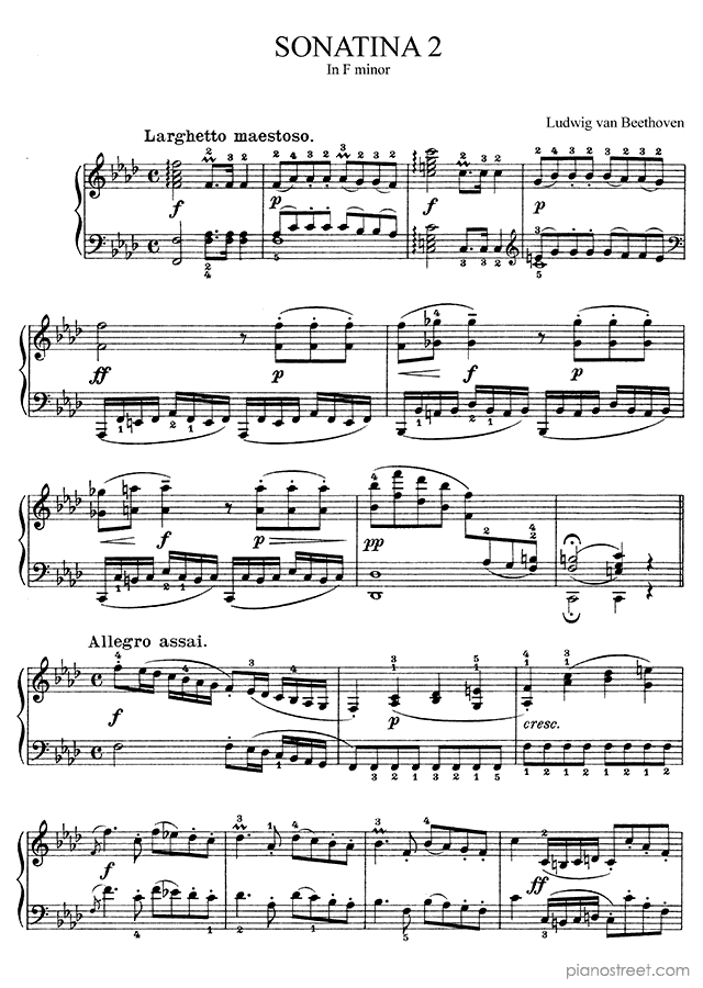 Piano sheet music and recordings. This piece is from Sonatinas by Ludwig van Beethoven: Sonatina No. 2 in F Minor . Level 6, Period: Classical