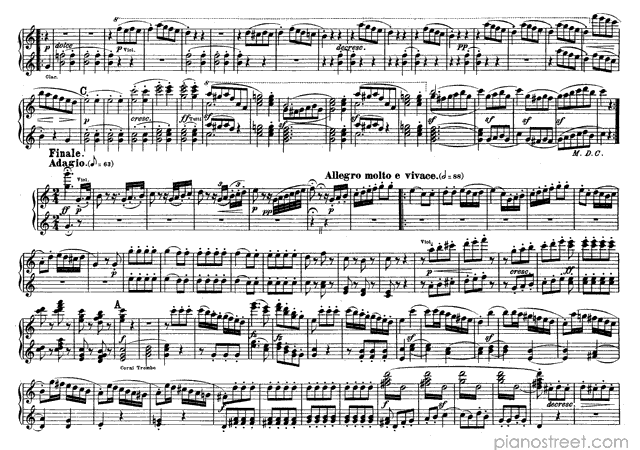 Ludwig van Beethoven: Symphony 1 Op. 21 in C Major from Symphonies - Transcriptions for four hands - piano sheet music to print instantly. This piece is level 8+ and was composed during the Classical period.