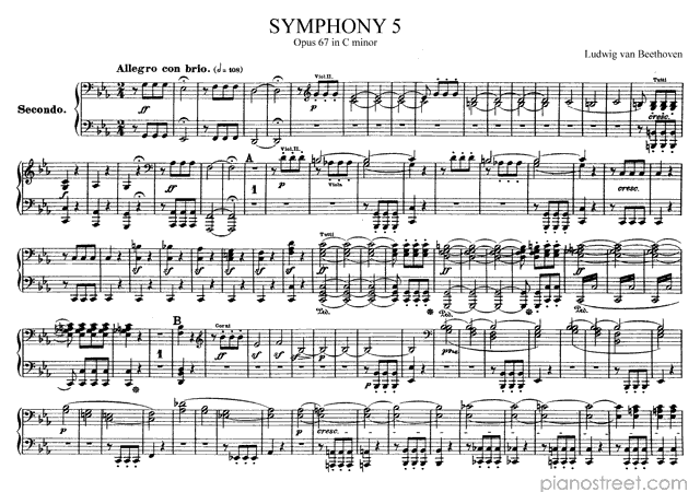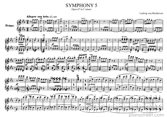 DOWNLOAD: Ludwig van Beethoven - Symphony 5 Op. 67 in C Minor ( from Symphonies - Transcriptions for four hands by Beethoven). Piano sheet music to print immediately or to view in mobile devices.