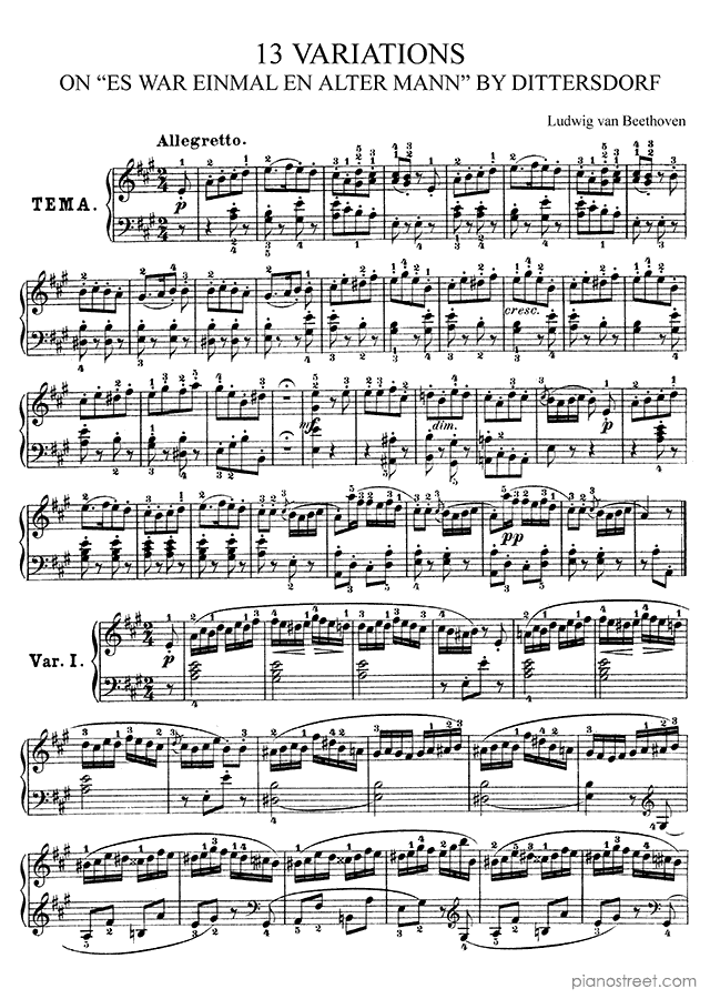 DOWNLOAD 13 Variations on Es war einmal ein alter Mann by Dittersdorf, WoO 66 in A Major by Ludwig van Beethoven (published in 1792) . High quality classical piano scores from the Piano Street sheet music library.