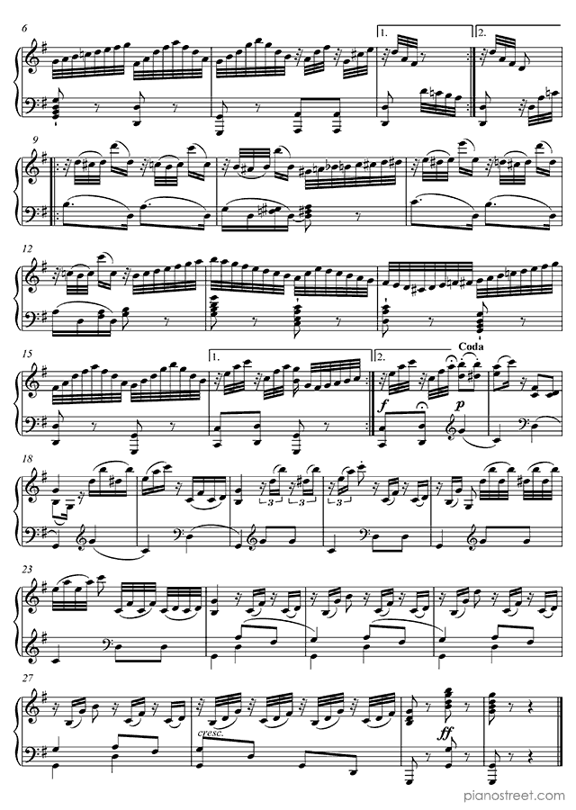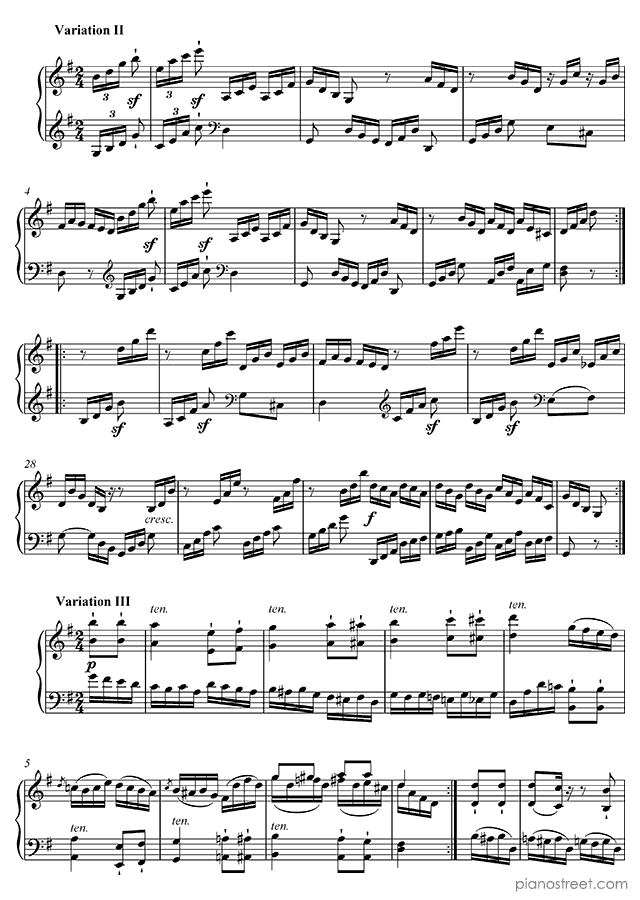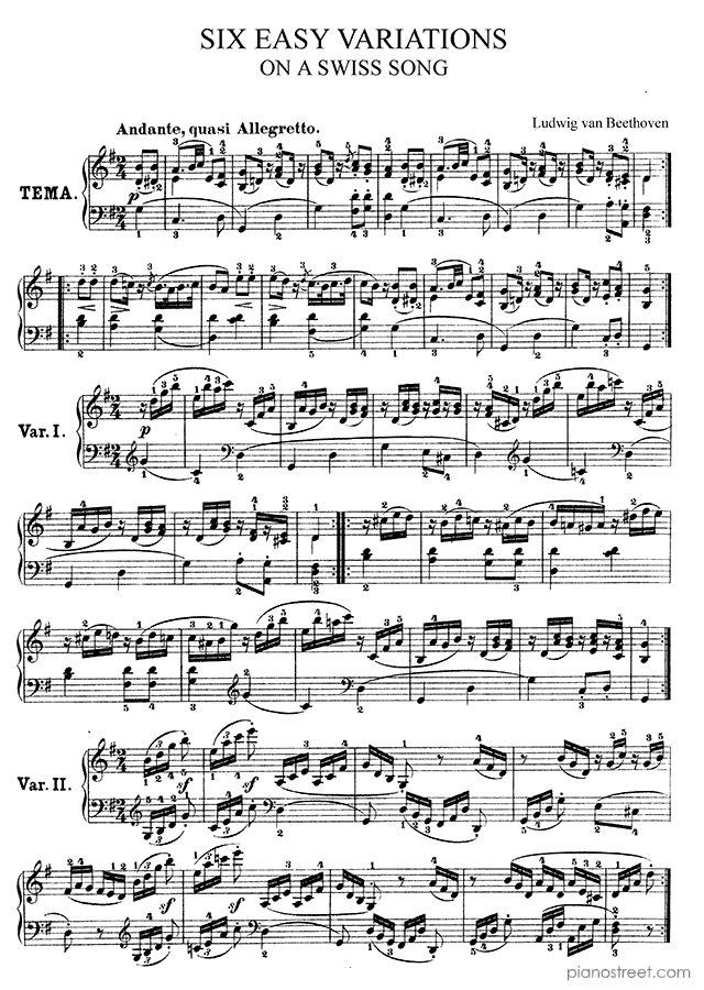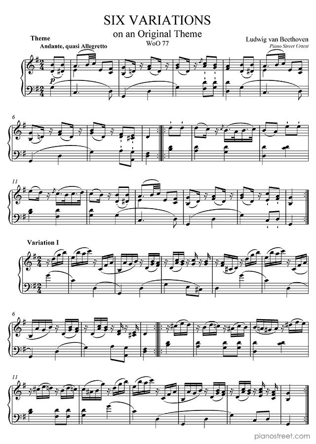 Downloadable piano sheet music from Variations by Ludwig van Beethoven to print: Six Easy Variations, WoO 77 in G Major (published in 1800)
