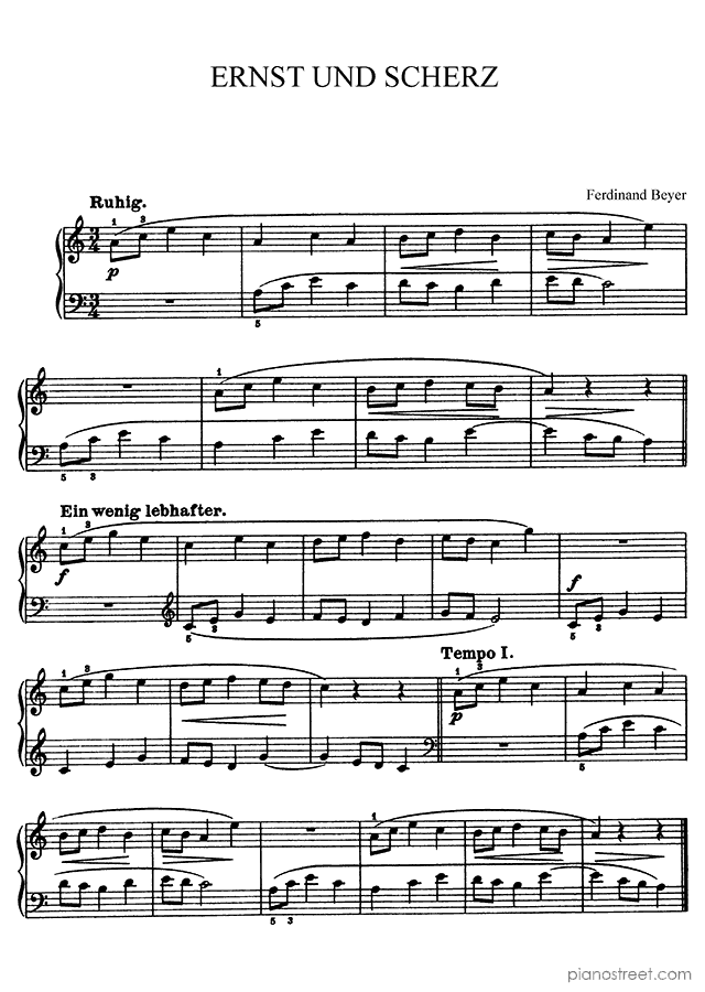 Ernst und Scherz in A Minor by Ferdinand Beyer. Sheet music and recordings of thousands of piano pieces by Ferdinand Beyer and many other famous composers to view in your digital device, print out or listen to.