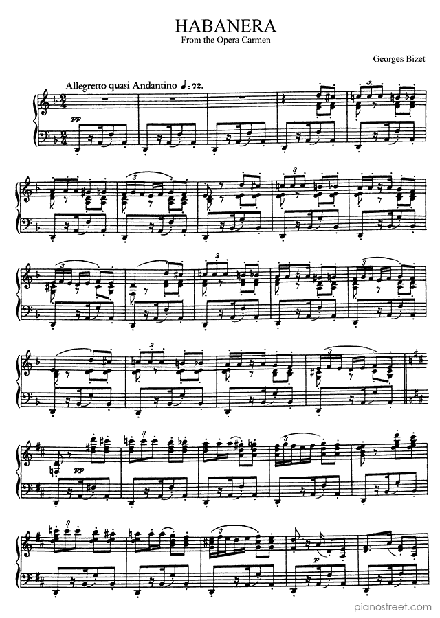 DOWNLOAD Habanera from Carmen in D Minor by Georges Bizet. High quality classical piano scores from the Piano Street sheet music library.