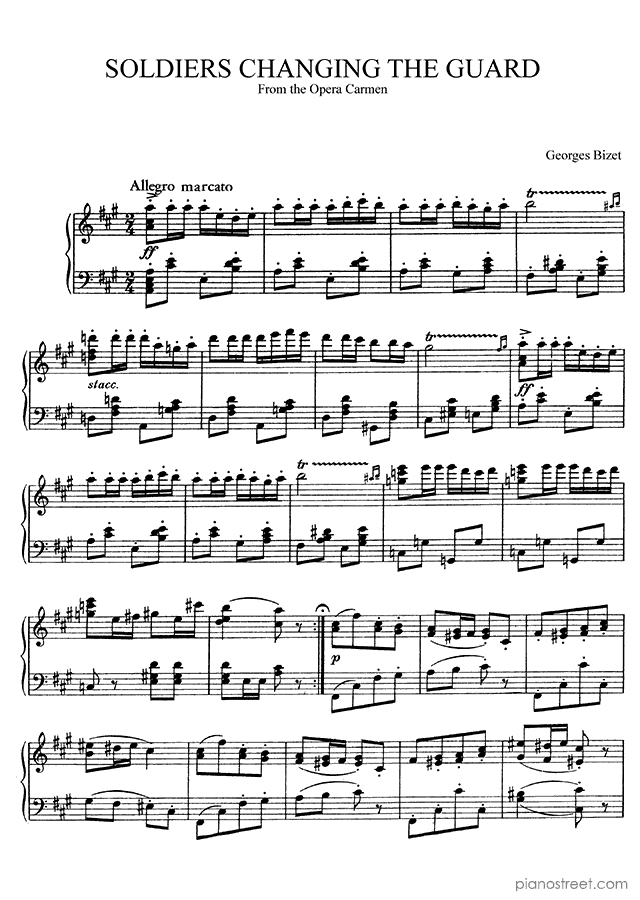 Classical piano sheet music by Bizet to download: Soldiers Changing the Guard from Carmen in the key of This piece has difficulty level 6 in the category Transcription