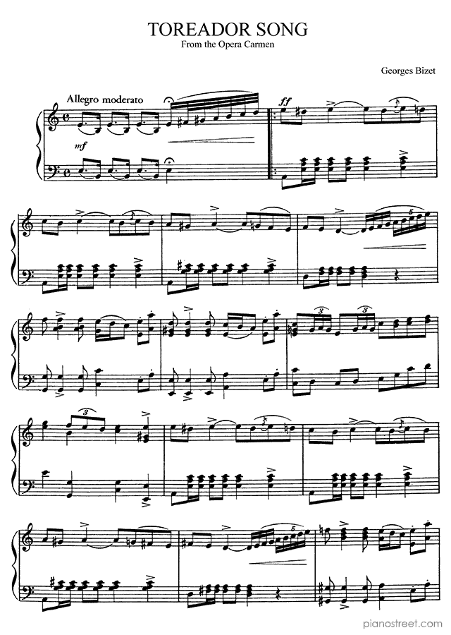 Downloadable piano sheet music by Georges Bizet to print: Toreador Song from Carmen in A Minor