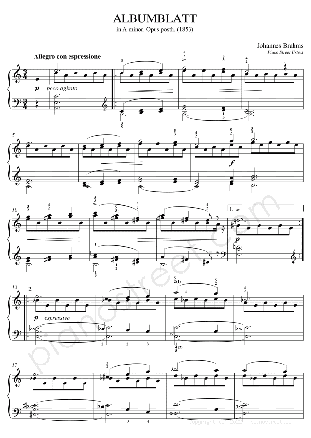 Albumblatt in A Minor, a composition by the early romantic composer Johannes Brahms who was born in 1833 and died in 1897. The piano score of this piece was first published in 1853.