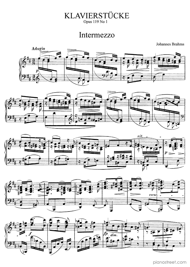 Intermezzo in B Minor Op. 119 No. 1 by Johannes Brahms. Sheet music and recordings of thousands of piano pieces by Johannes Brahms and many other famous composers to view in your digital device, print out or listen to.