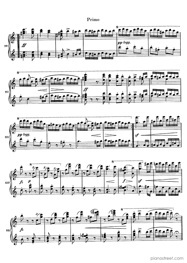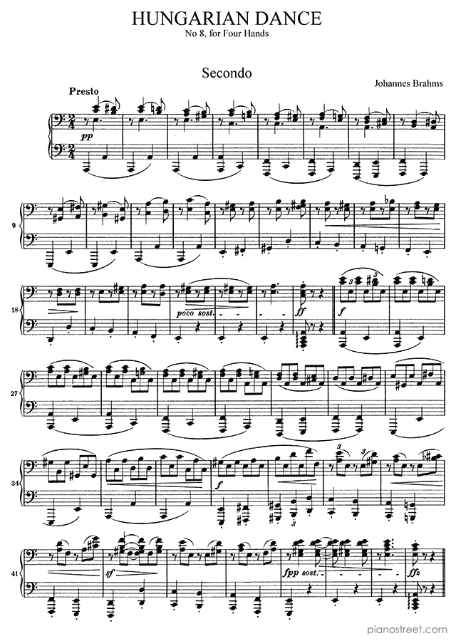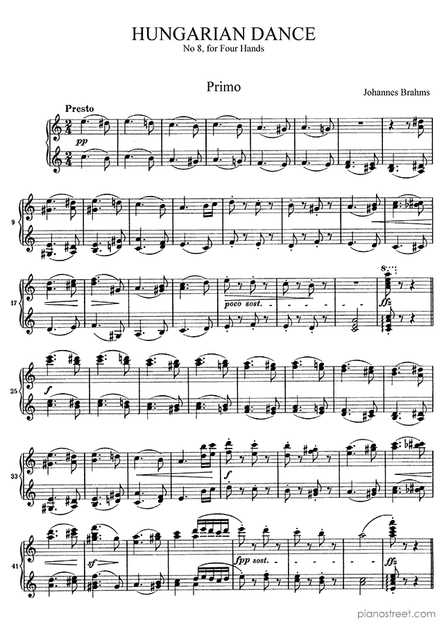 DOWNLOAD: Johannes Brahms - Hungarian Dance No. 8 in A Minor ( from Hungarian Dances (four hands) by Brahms). Piano sheet music to print immediately or to view in mobile devices.