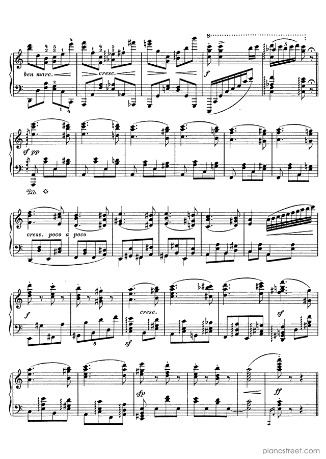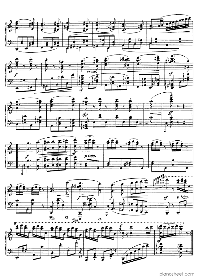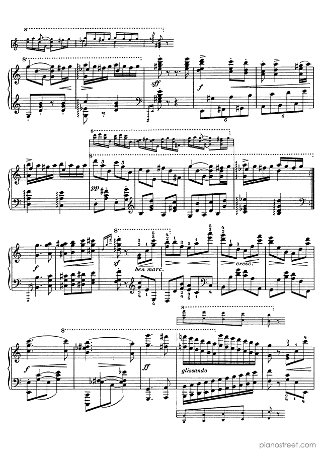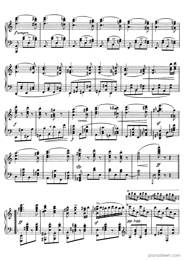 Downloadable piano sheet music from Hungarian Dances (solo piano) by Johannes Brahms to print: Hungarian Dance (solo piano version) No. 8 in A Minor (published in 1872)