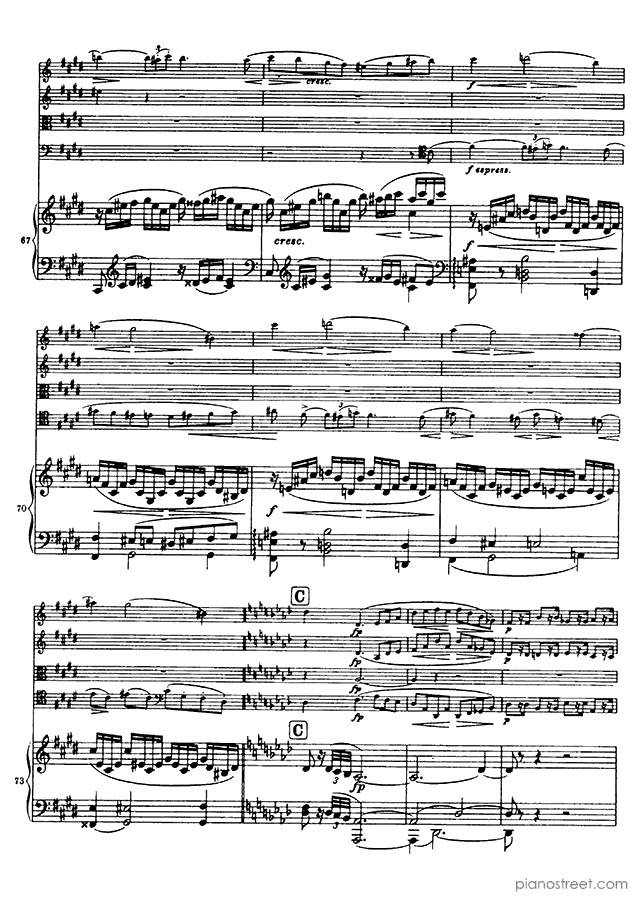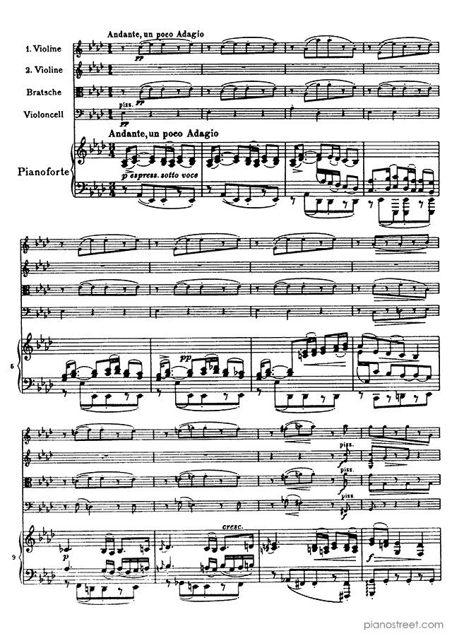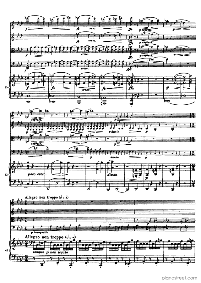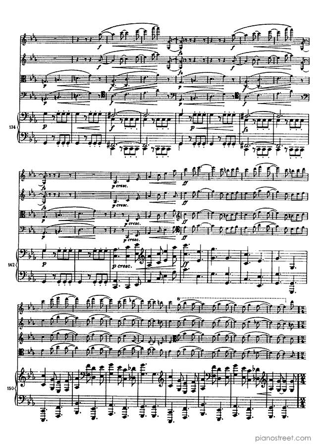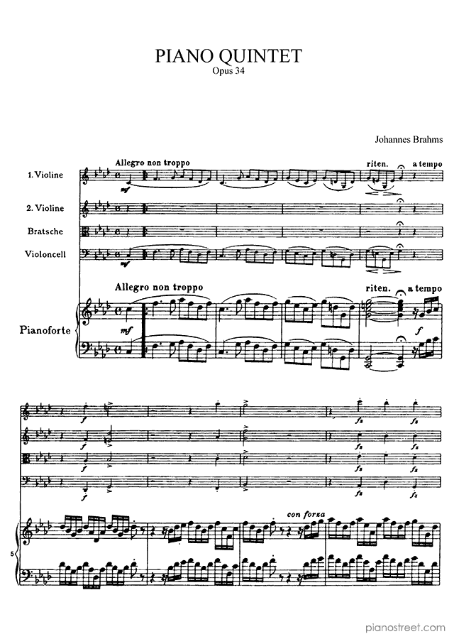 This piece is composed by Johannes Brahms and was published in 1864. Title: Piano Quintet, Op. 34 in F Minor . The difficulty level is around ABRSM grade 8+ and it belongs to the Early Romantic period.