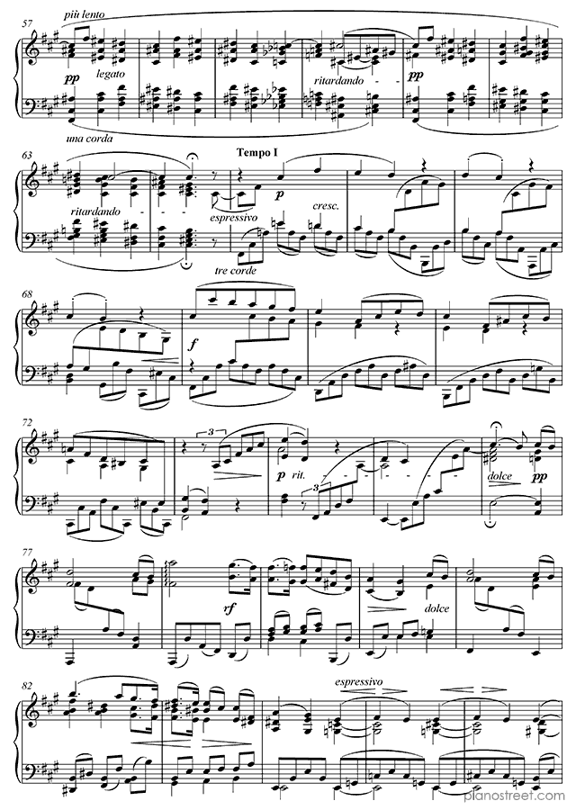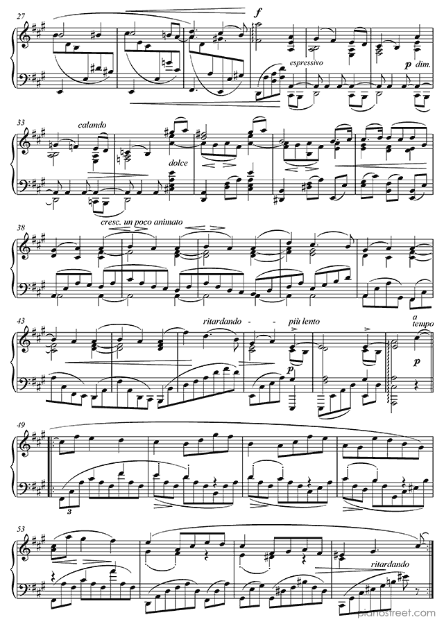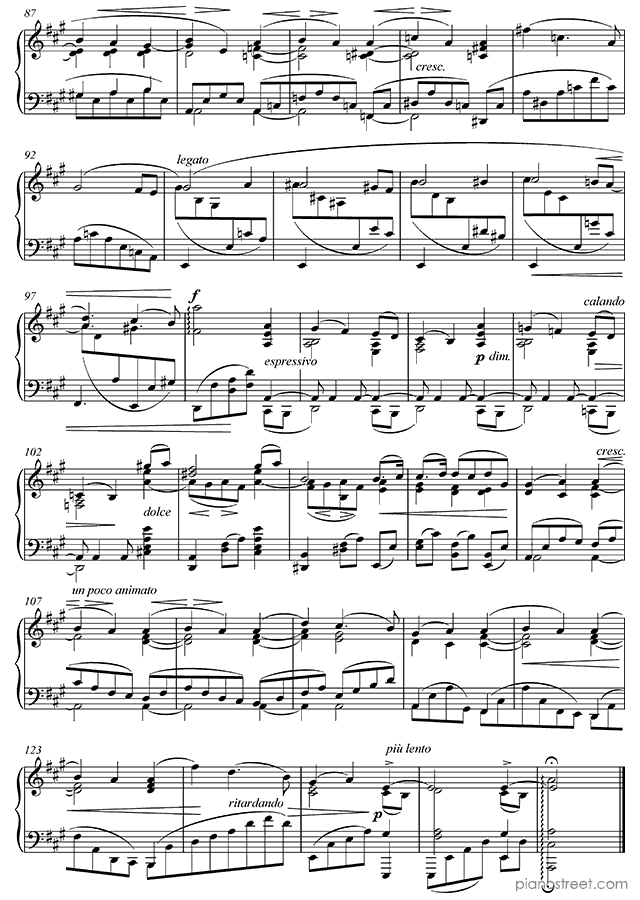 Behind the somewhat bland titles that Brahms gave his late piano pieces (Intermezzo, Capriccio, Rhapsody, etc.) we find music of great introspection and beauty. That is certainly true of this Intermezzo, which is among his most beloved compositions. Often referred to as a secret love letter to Clara Schumann, it is a very popular choice among good amateur pianists. Such endeavors are certainly worthy, and the pianist will be well rewarded with a nostalgic and yearning experience that calms the soul and lifts the spirit.Background