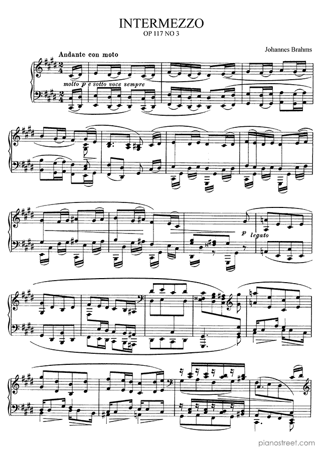DOWNLOAD Intermezzo in C-sharp Minor Op. 117 No. 3 by Johannes Brahms (published in 1892) . High quality classical piano scores from the Piano Street sheet music library.